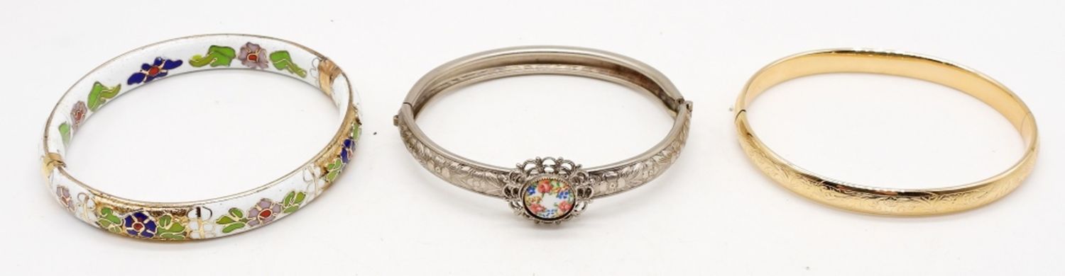 FLORAL GOLD LINED CLOISONNE NATURAL STONE & HAND PAINTED FLORAL CENTER