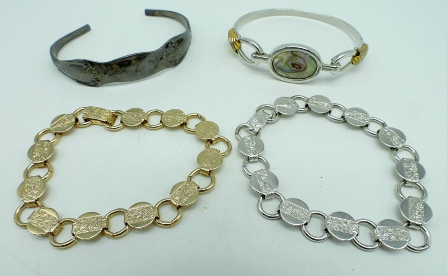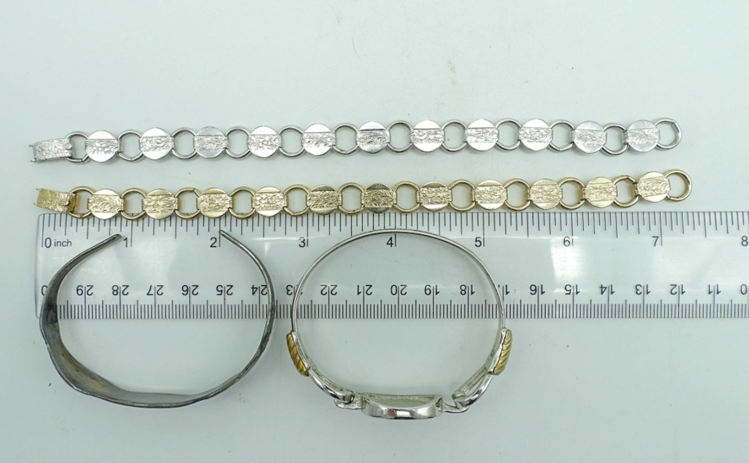 2- SARAH COV GOLD AND SLIVER TONE 7 1/2″ LONG 2 CUFF BRACELETS 2 1/2″
