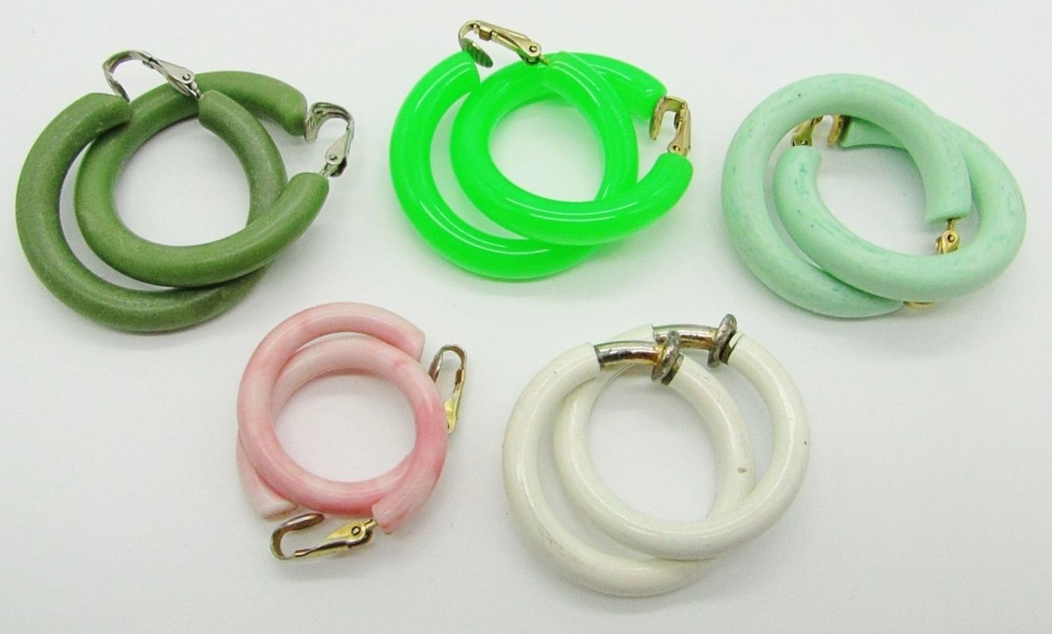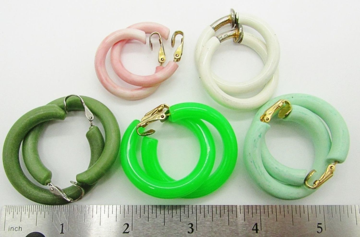 PLASTIC/ACRYLIC IN WHITE, PINK, AND THREE SHADES OF GREEN. (4) 1.5″ DIAMETER, (1) 1″ DIAMETER