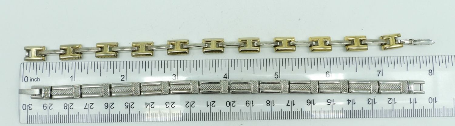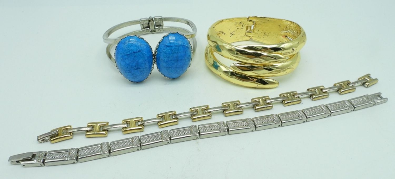 2- 7 1/2″ LONG WITH OPEN BOX CLASP, 2 CUFF HINGE BRACELETS, 2 1/2″ WIDE