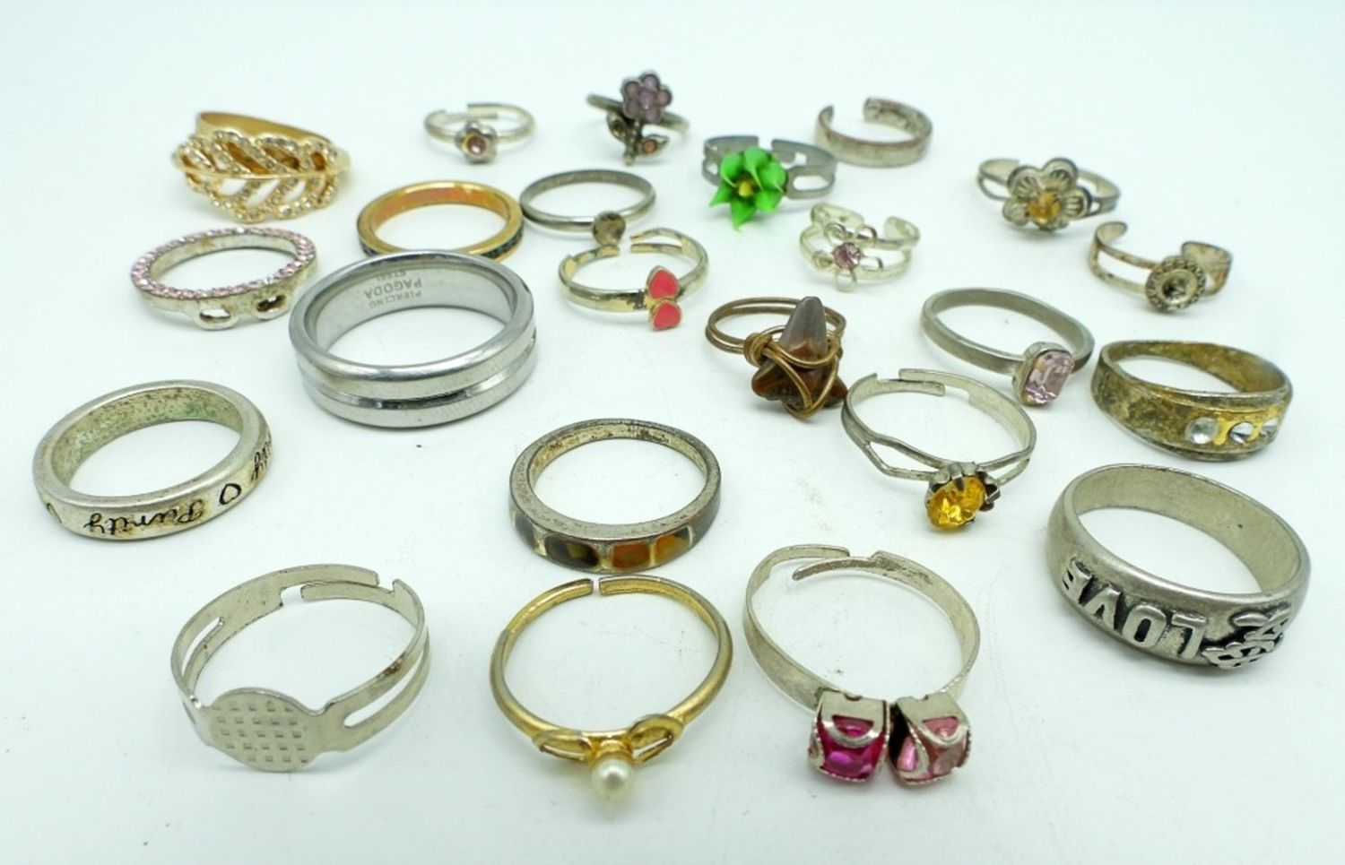RINGS ASSORTED, VARIOUS STYLES, SIZES AND CONDITIONS