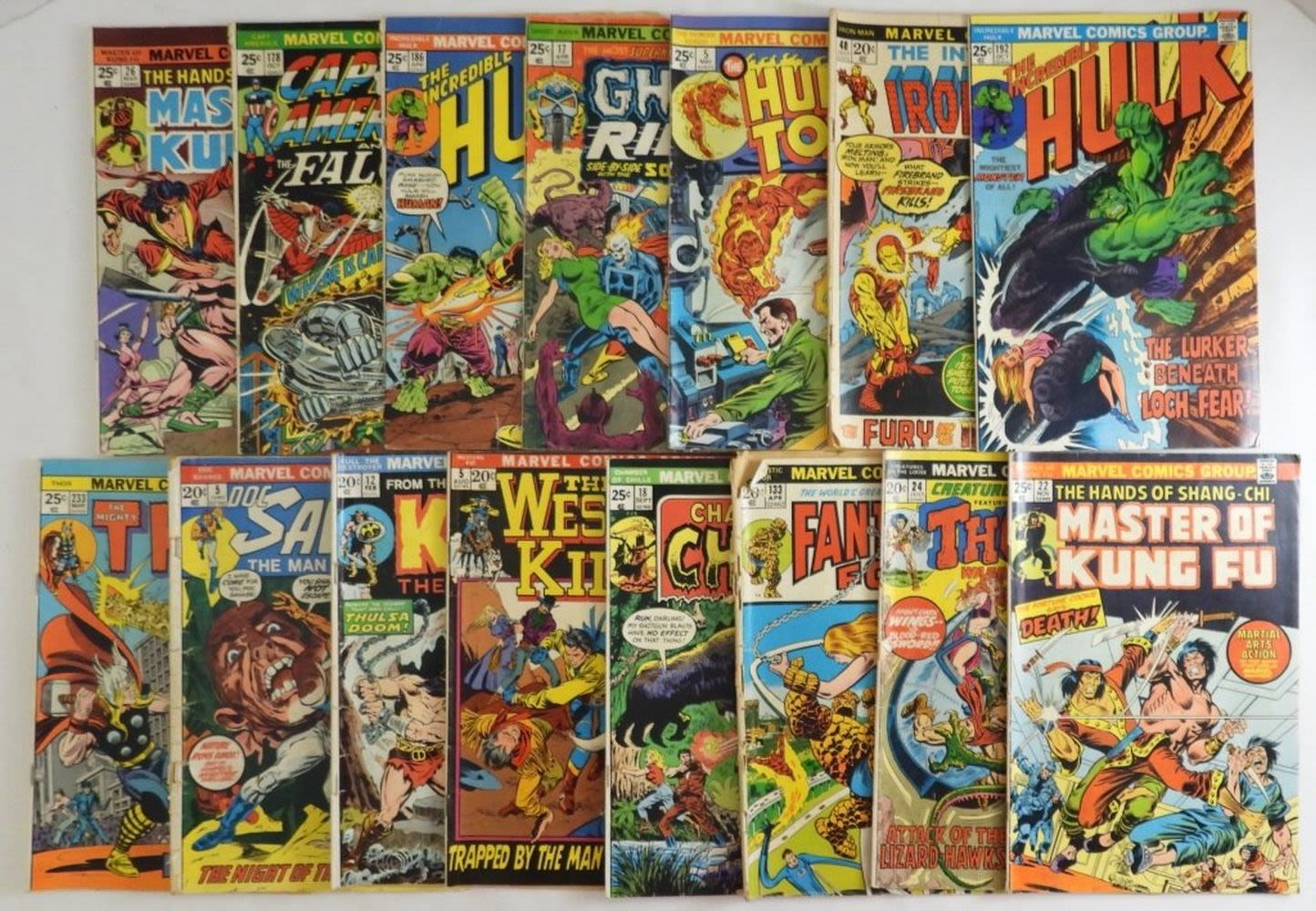 GREAT MIX – HULK, IRON MAN, HUMAN TORCH, GHOST RIDER, CAPT AM, MASTER KUNG FU, THONGOR, FANTASTIC FOUR, CHILLS, KULL & MORE – 20c & 25c ISSUES – GOOD/VG