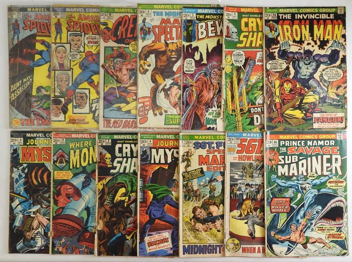 GREAT MIX – SPIDER-MAN, IRON MAN, CREATURES, MARVEL SPECTACULAR, SUB-MARINER, SGT. FURY, JOURNEY INTO MYSTERY, CRYPTO OF SHADOWS, BEWARE & MORE – FAIR/GOOD