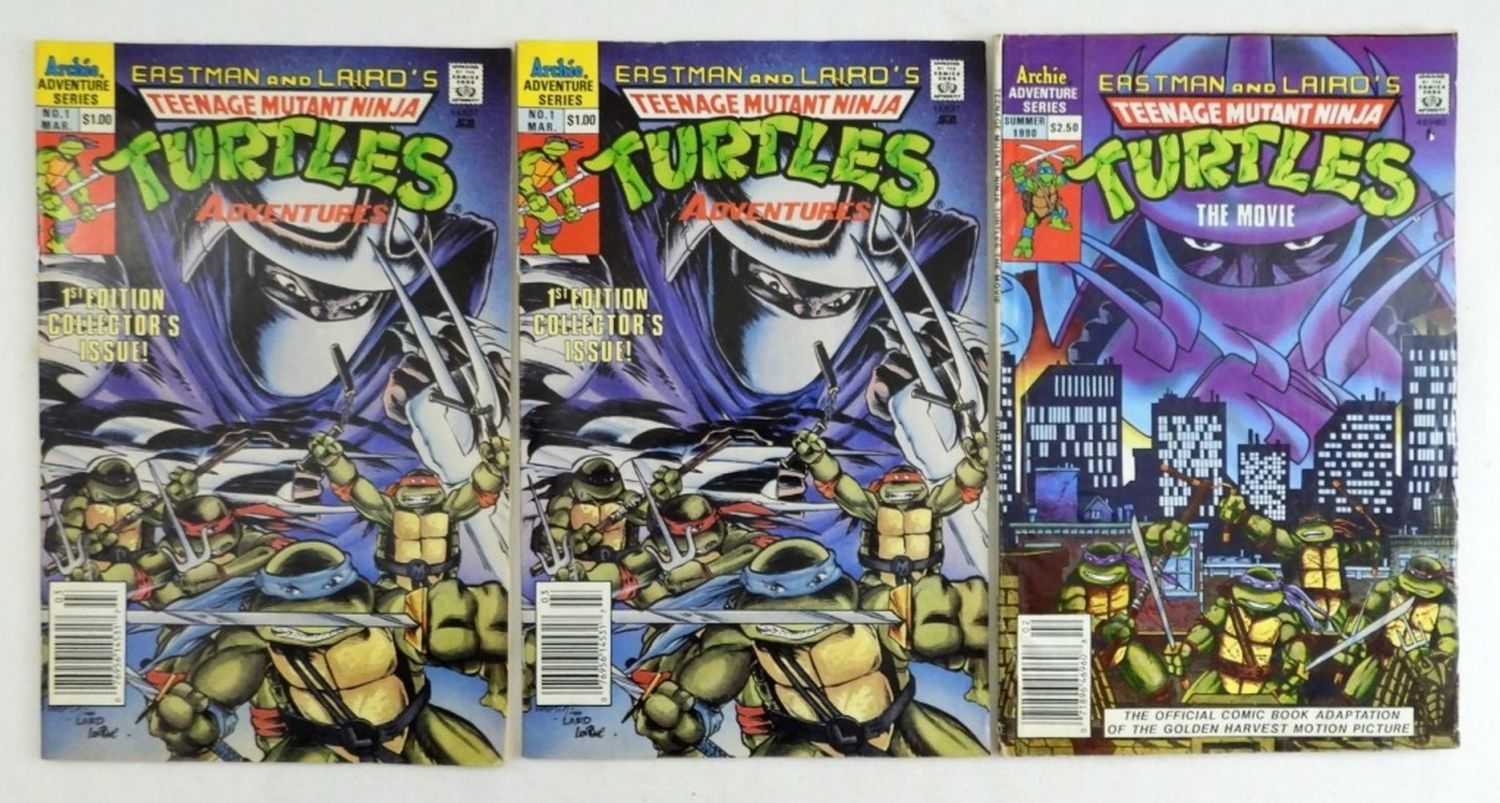 1989 & 1990 Eastman & Laird’s Teenage Mutant Ninja Turtles Adventures #1 (x2), The Movie Summer 1990; Good/Fair Conditions.