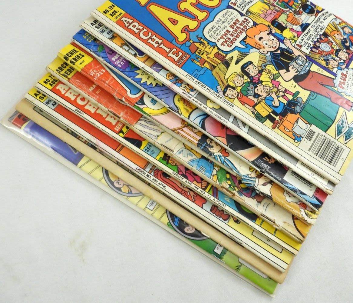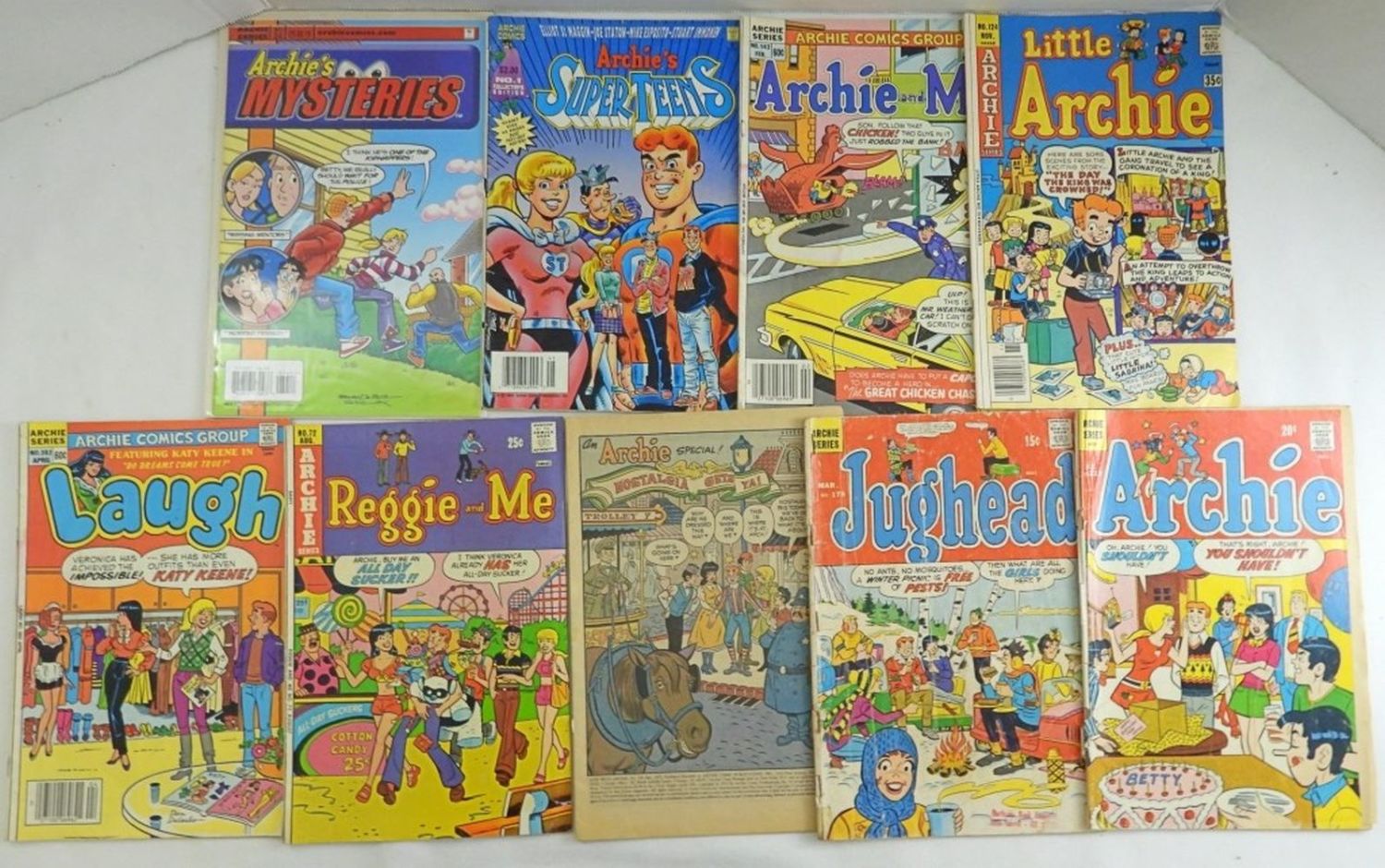1970 Jughead #178, 1972 Archie #223 (Cover Detached), 1973 Life With Archie #129 (Missing Cover & Back), 1974 Reggie & Me #72, 1984 Laugh #382, 1977 Little Archie #124, 1984 Archie & Me #143, 1994 Archie’s SuperTeens #1, 2004 Archie’s Mysteries #34; Various Conditions.
