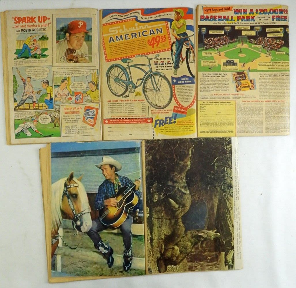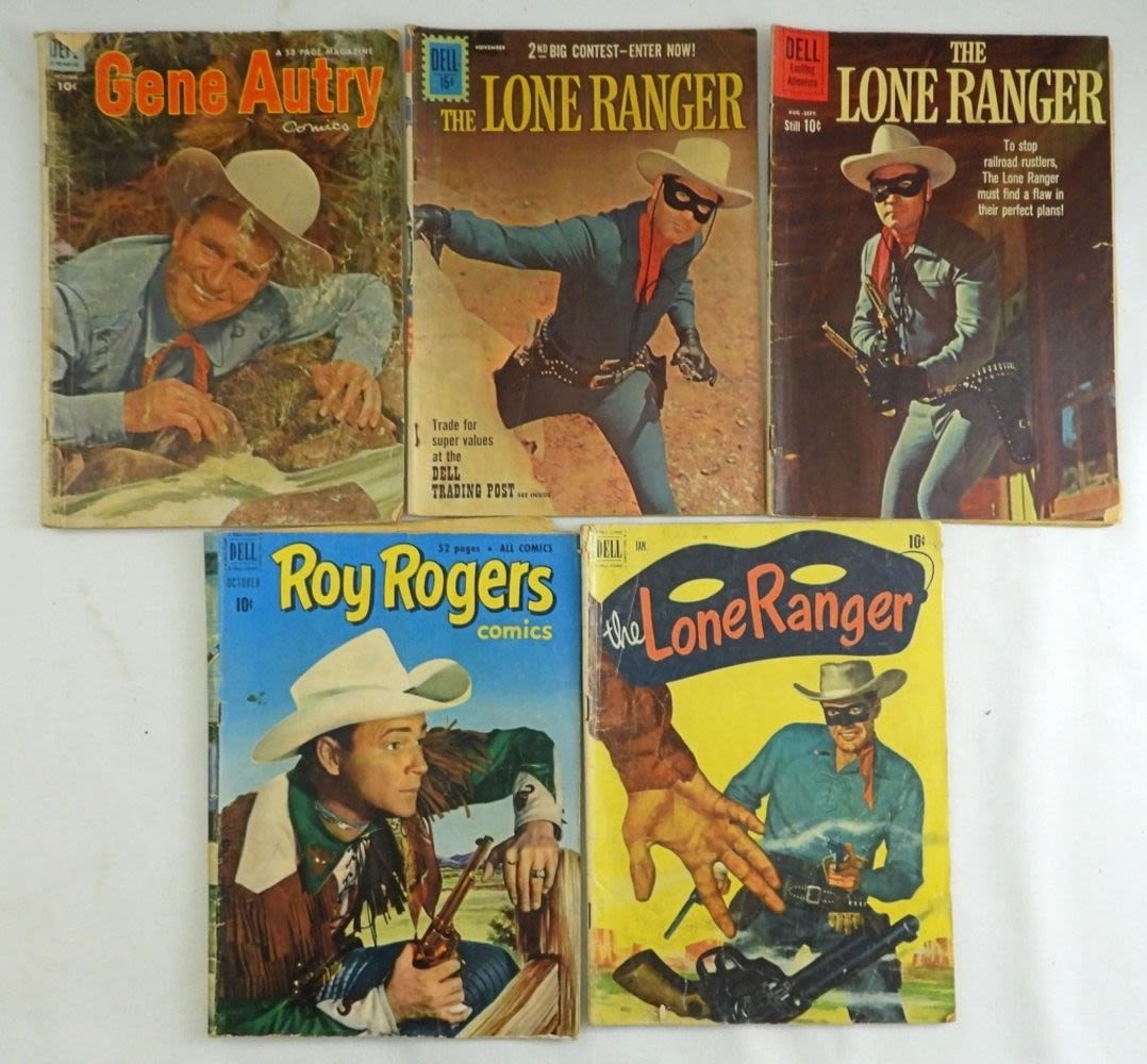 1951 Roy Rogers #46, 1952 Lone Ranger #43, 1960 Lone Ranger #135, 1961 Lone Ranger #142, Gene Autry October (Missing First 2 Pages); Fair Conditions.