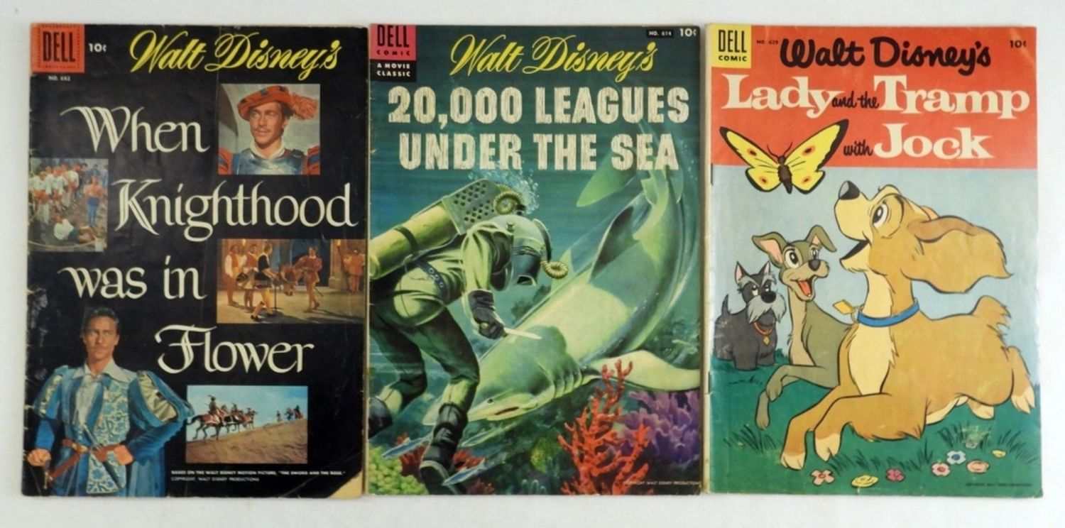 1953 When Knighthood Was In Flower #682, 1954 20,000 Leagues Under the Sea #614, 1955 Lady & the Tramp with Jock #629; Good Conditions.