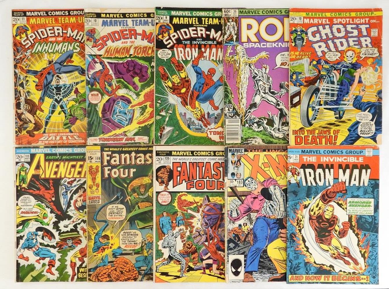 IRON MAN, FANTASTIC FOUR, AVENGERS, GHOST RIDER, ROM, MARVEL TEAM-UP SPIDER-MAN – ALL DIFFERENT (3) FAIR – REST GOO/VG