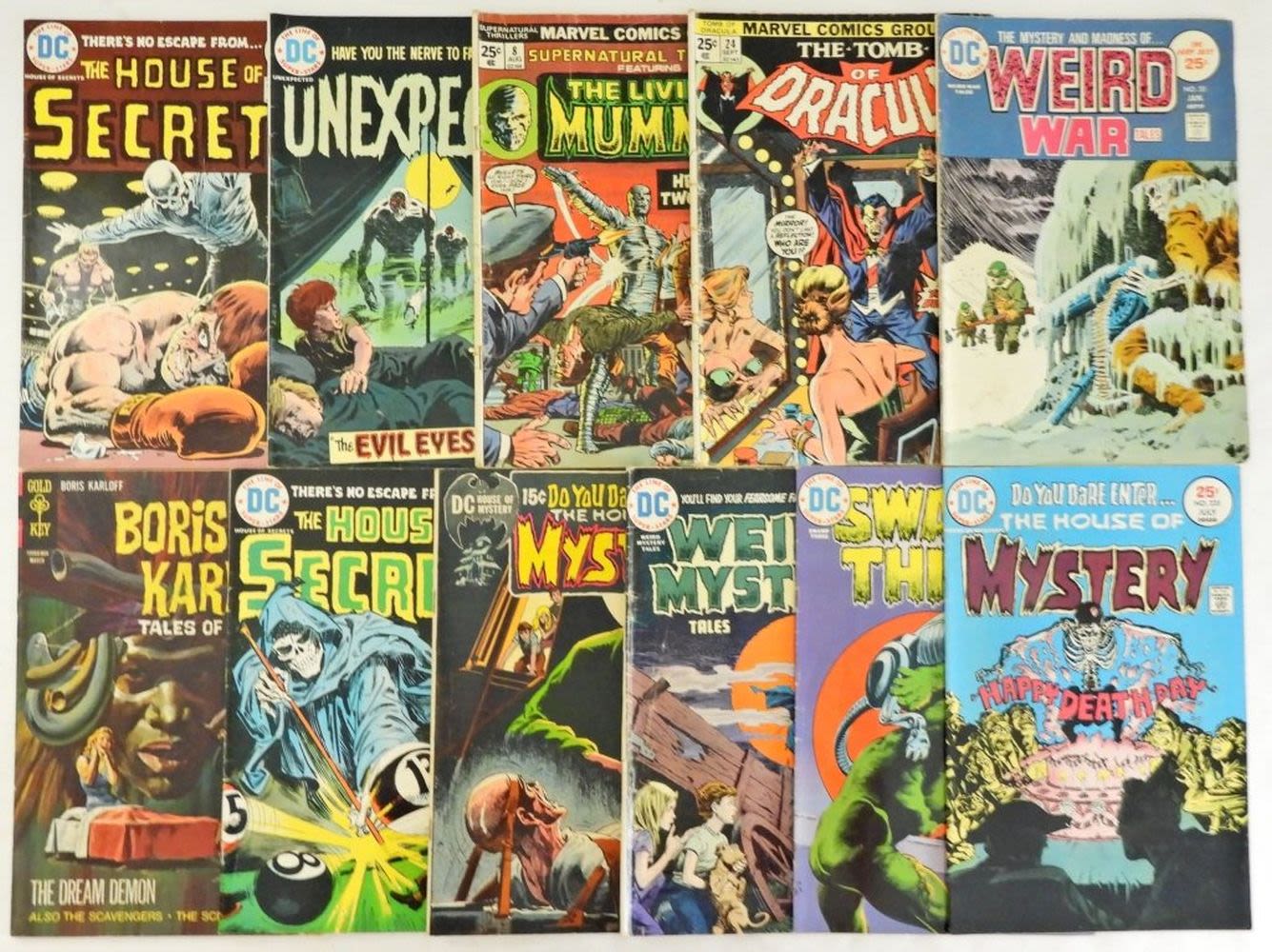 WEIRD MYSTERY, SWAMP THING, WEIRD WAR, UNEXPECTED, THE LIVING MUMMY, DRACULA, BORIS KARLOFF – GREAT MIX of DC, MARVEL & GOLD KEY – MOSTLY GOOD/VG