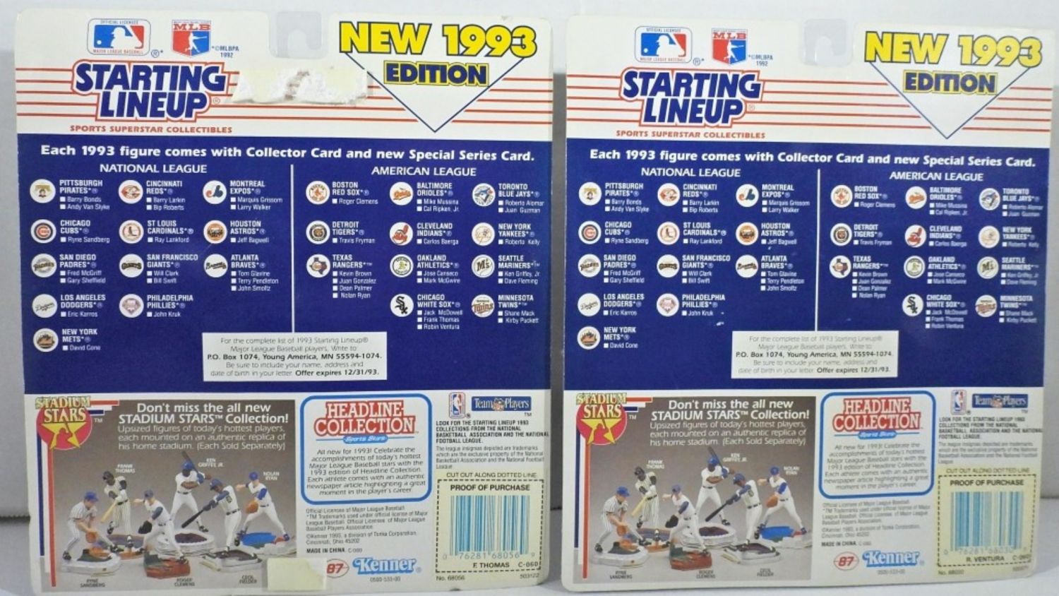MADE BY KENNER, SEALED , GOOD CONDITION, EACH ONE COME WITH A SPECIAL SERIES CARD, ROBIN VENTURA AND FRANK THOMAS