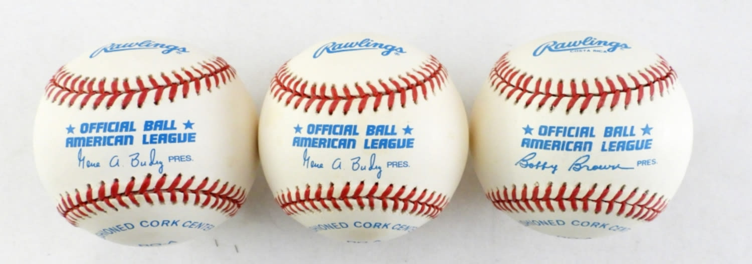 NO COA’S, ALL SIGNED ON OFFICIAL AMERICAN LEAGUE BALLS, IVAN RODRIGUEZ, CHARLES NAGY, NOMAR GARCEAPARI