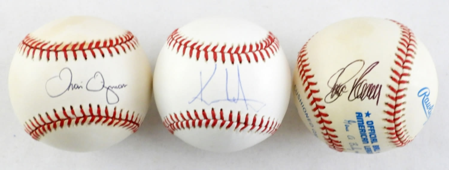 NO COA’S ALL SIGNED ON AMERICAN LEAGUE BALLS, STEVE KARSAY, TRAVIS FRYMAN, KENNY LOFTON