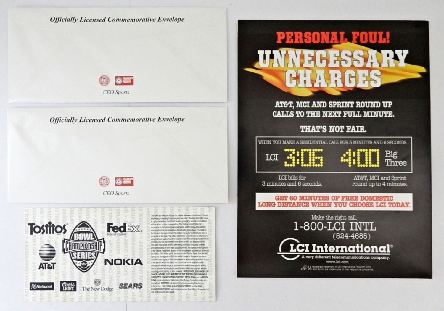 PLUS (2) 2003 FIESTA BOWL OFFICIALLY LICENSED COMMEMORATIVE ENVELOPES, 1999 FIESTA BOWL GAME TICKET
