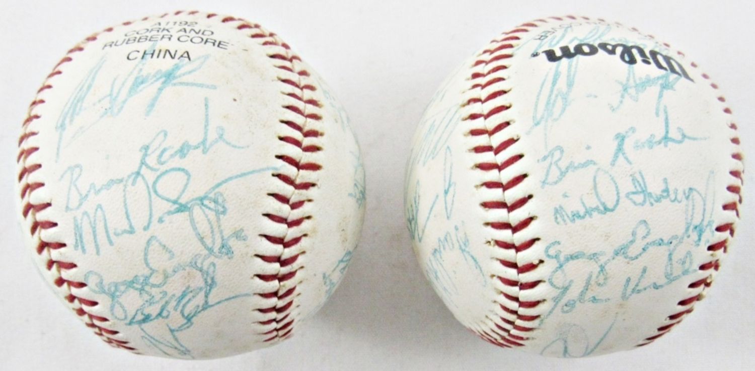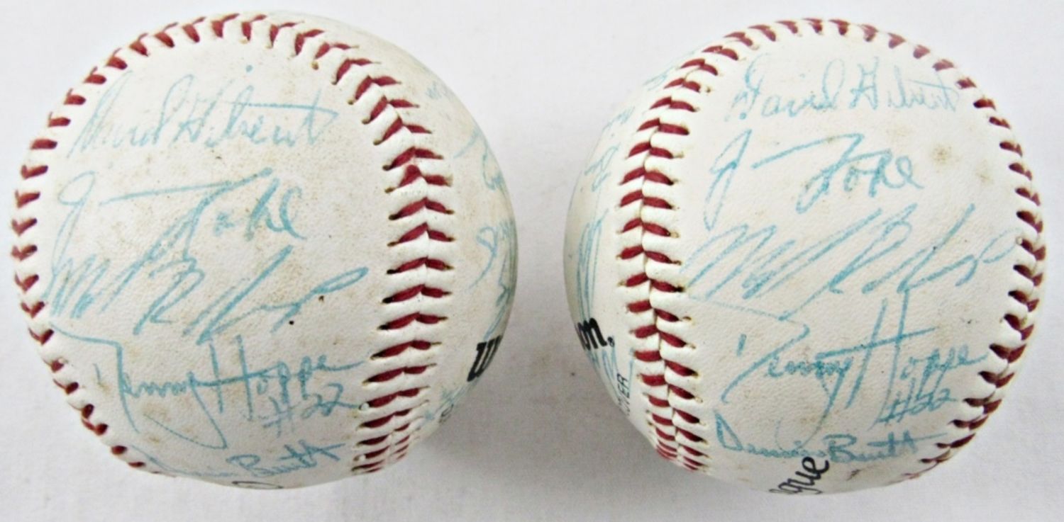 BOTH FROM SAME SIGNING – SAME SIGNATURES – UNIDENTIFIED on WILSON OFFICIAL LEAGUE BALL