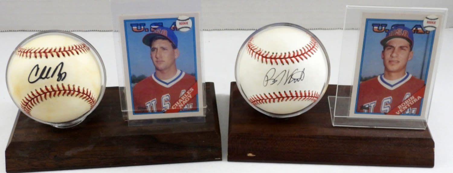 NO COA’S, 1- CHARLES NAGY AUTOGRAPH BASEBALL WITH TOPPS BASEBALL CARD, 1- ROBIN VENTURA AUTOGRAPH BASEBALL WITH TOPPS BASEBALL CARD. BOTH SIGNED ON AMERICAN LEAGUE BALL
