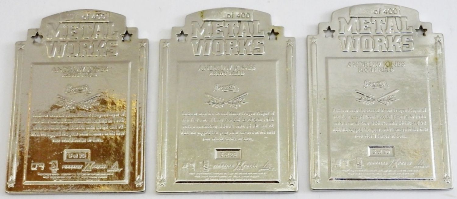 1997 PINNACLE X-PRESS METAL WORKS SILVER ANDRUW JONES ATLANTA BRAVES #17, #107, & #261 – NEW IN ORIGINAL BOX