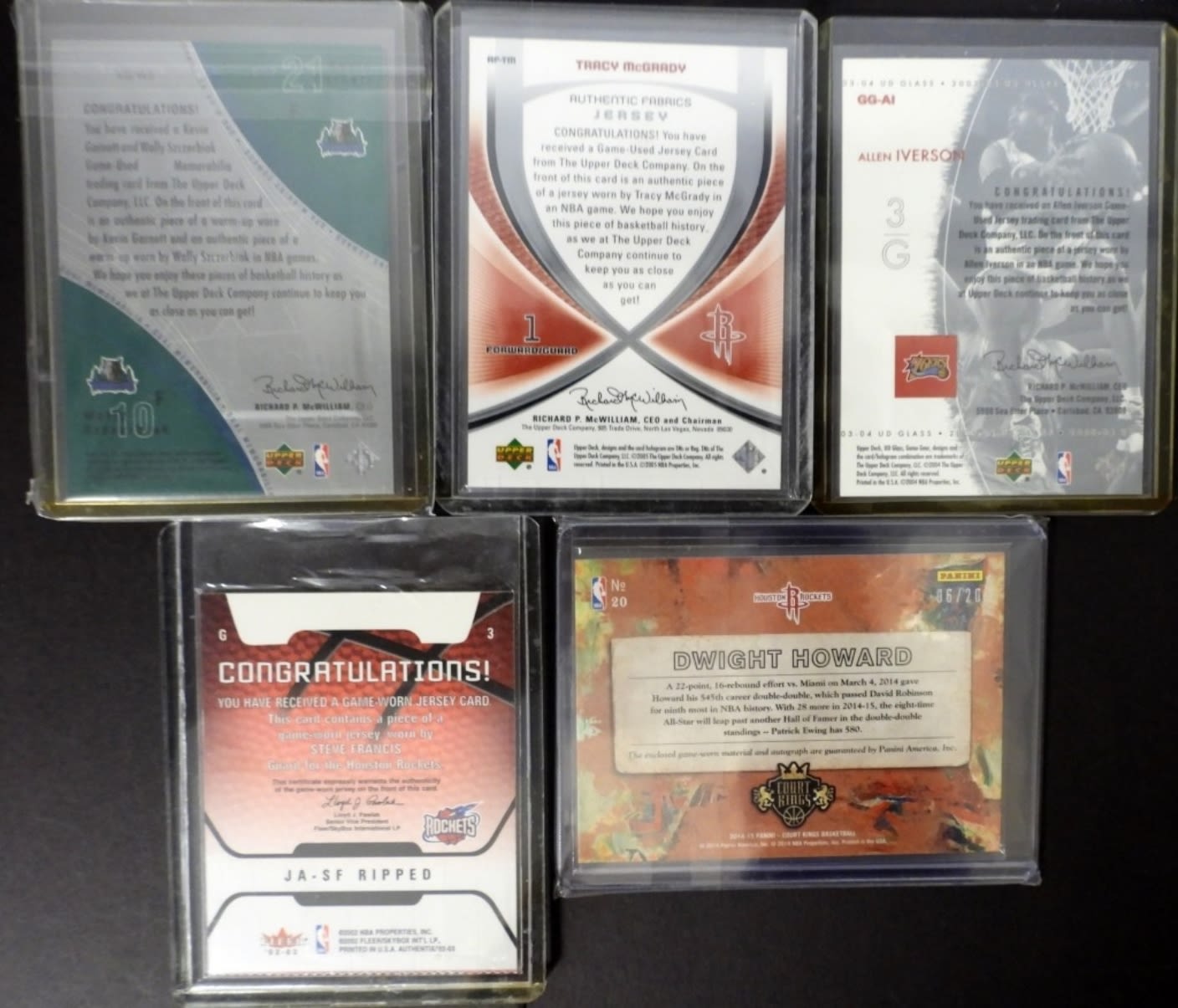 DUAL GARNETT / SZCZERBIAK, TRA Y McGRADY, ALLEN IVERSON, STEVE FRANCIS, DWIGHT HOWARD (autographed)