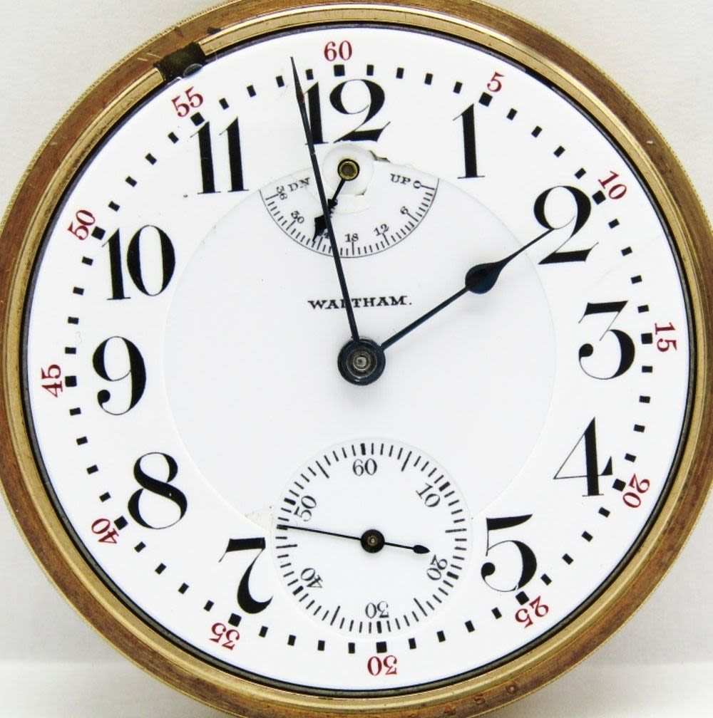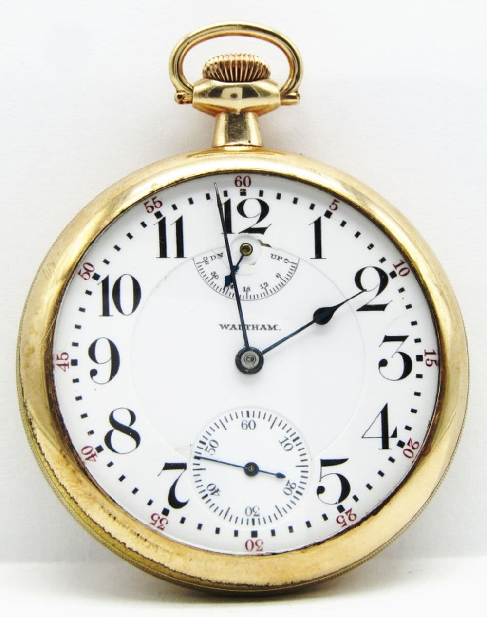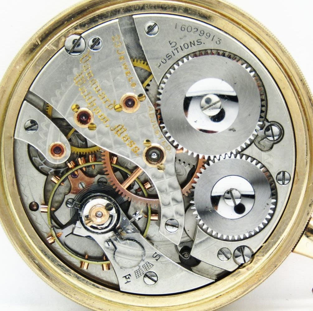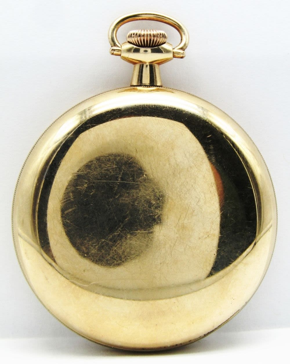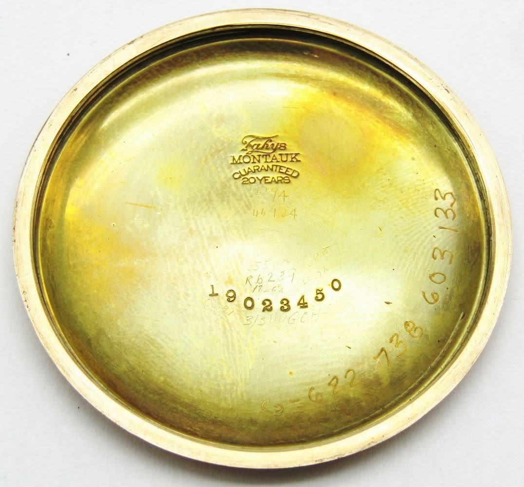 Nice Porcelain Dial, 23 Jewel Lever Set Caliber 1899 with Wind Indicator, Fahys Yellow Gold Filled Screwback Case.
