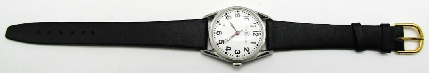 Perfect Original Dial, Stainless Screwback Case, 21 Jewel Hacking Swiss Movement. This watch was recently Fully Serviced. New Strap, 34mm.