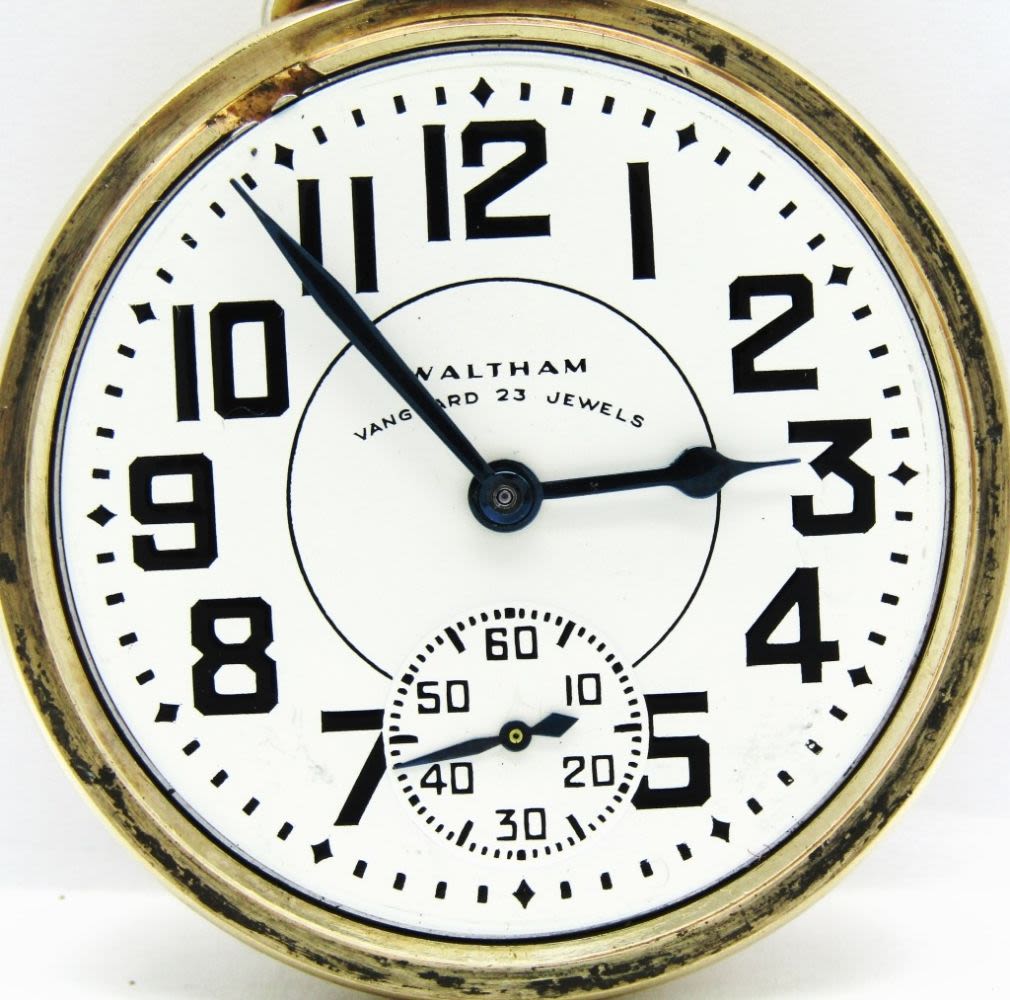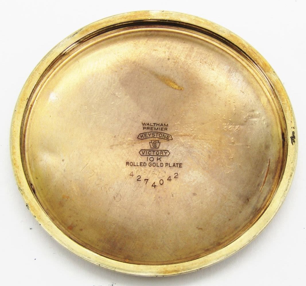 Nice Fully Signed Painted Metal, 23 Jewel, Lever Set Movement. Waltham Marked Gold Plated Screwback Case.