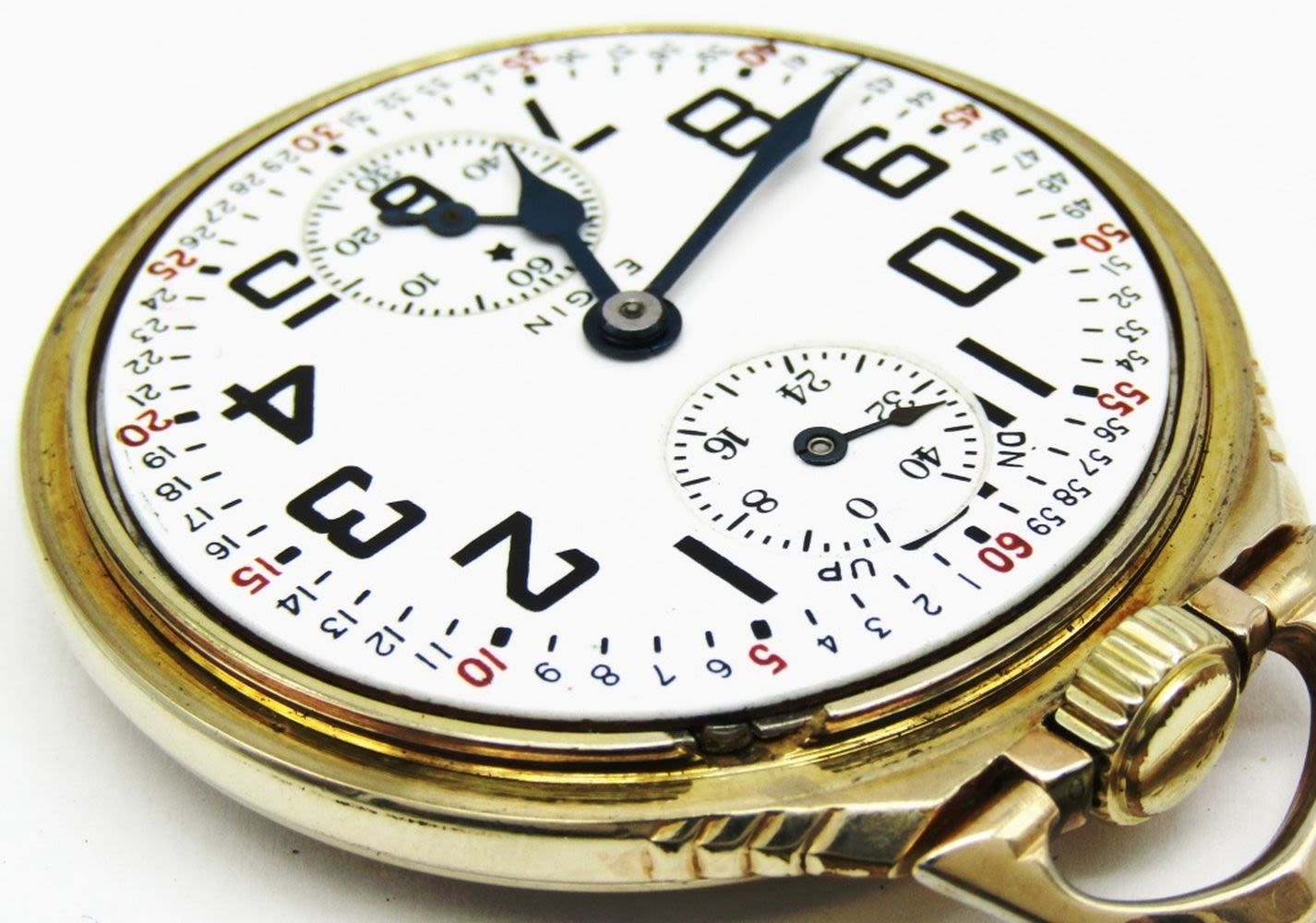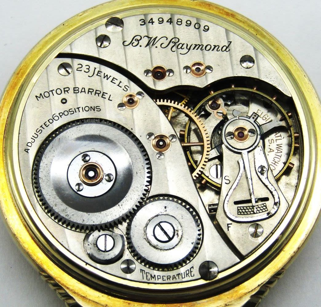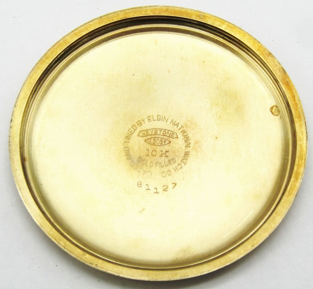 Perfect Porcelain Montgomery Dial, 23 Jewel Lever Set Movement with Wind Indicator Hand, Elgin Digned Yellow Gold Filled Keystone Case.