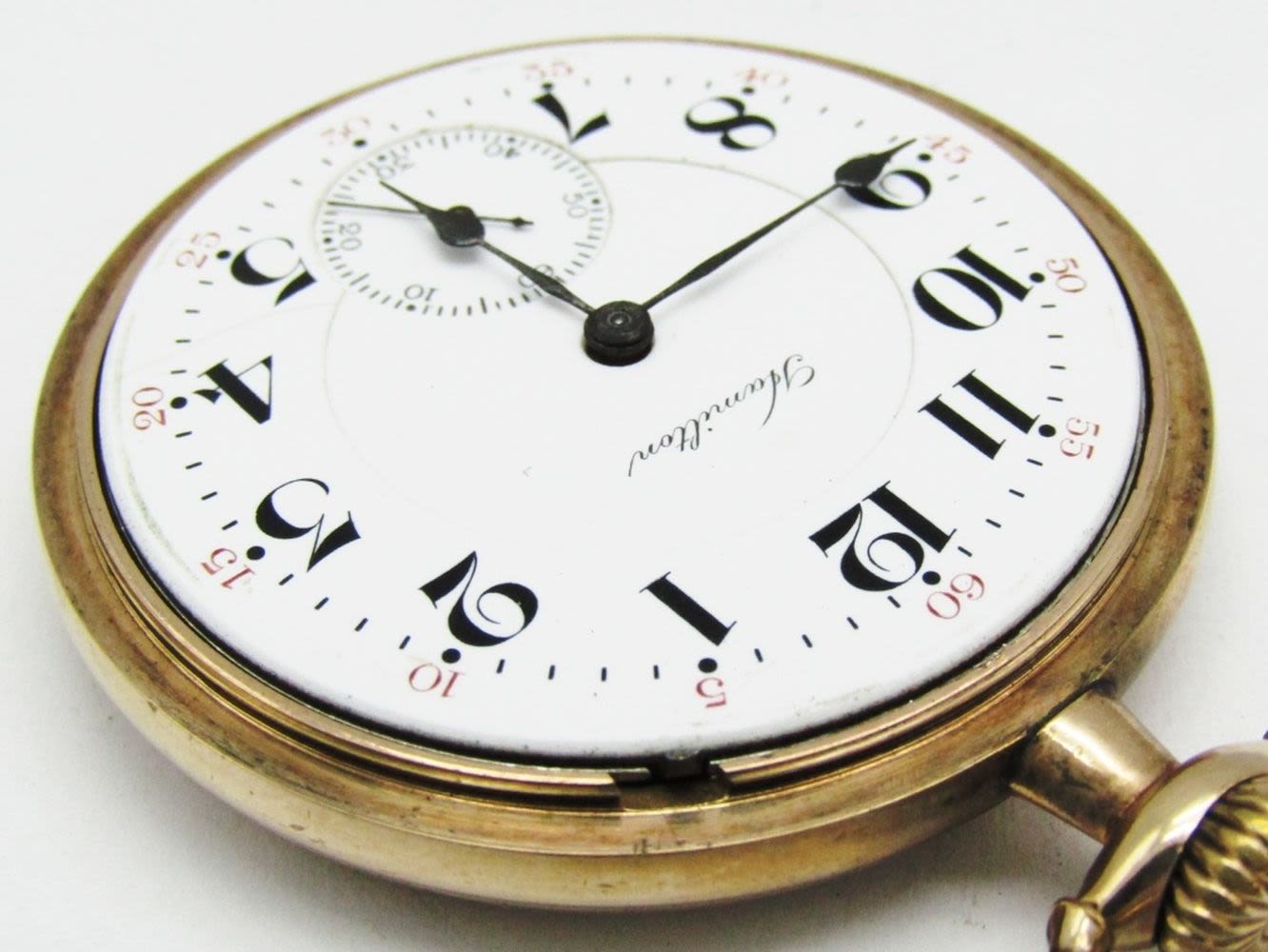 Nice Double Sunk Porcelain Dial, 21 Jewel Lever Set Movement, Yellow Gold Filled Screwback Case.