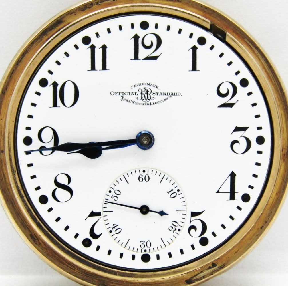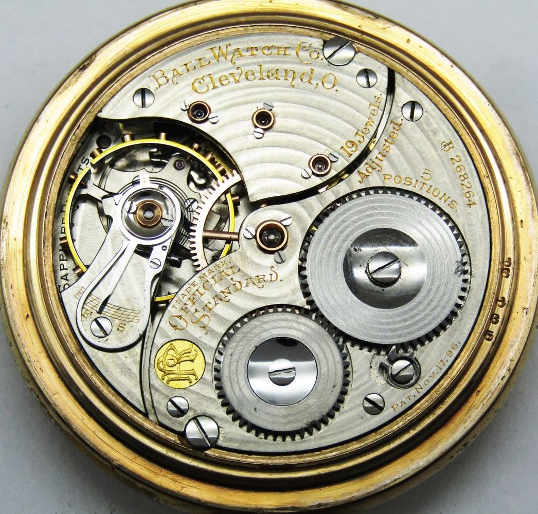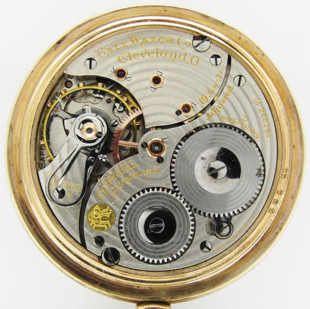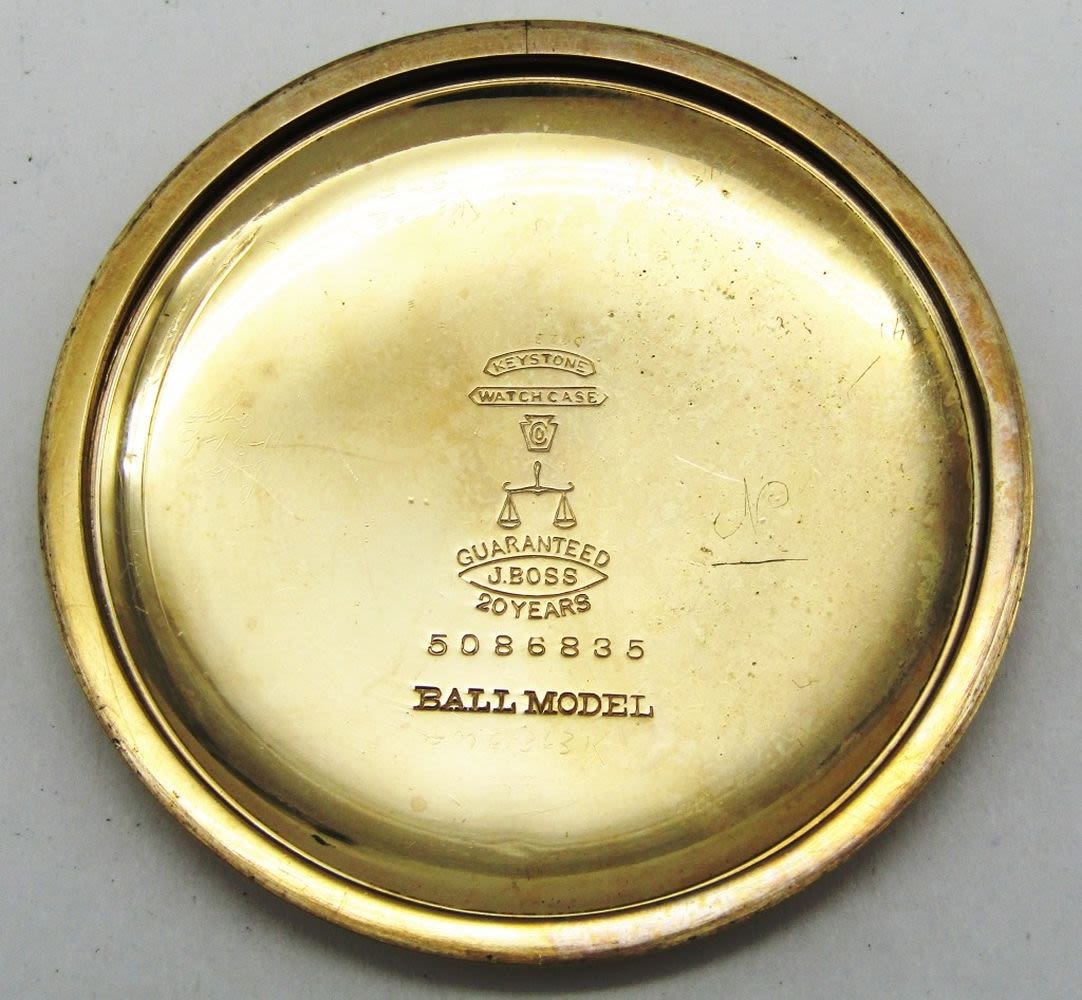 Nice Single Sunk Porcelain Ball Dial, 16S Lever Set, 19 Jewel Waltham Ball Movement, J. Boss Yellow Gold Filled Screwback Case Marked “Ball Model”.