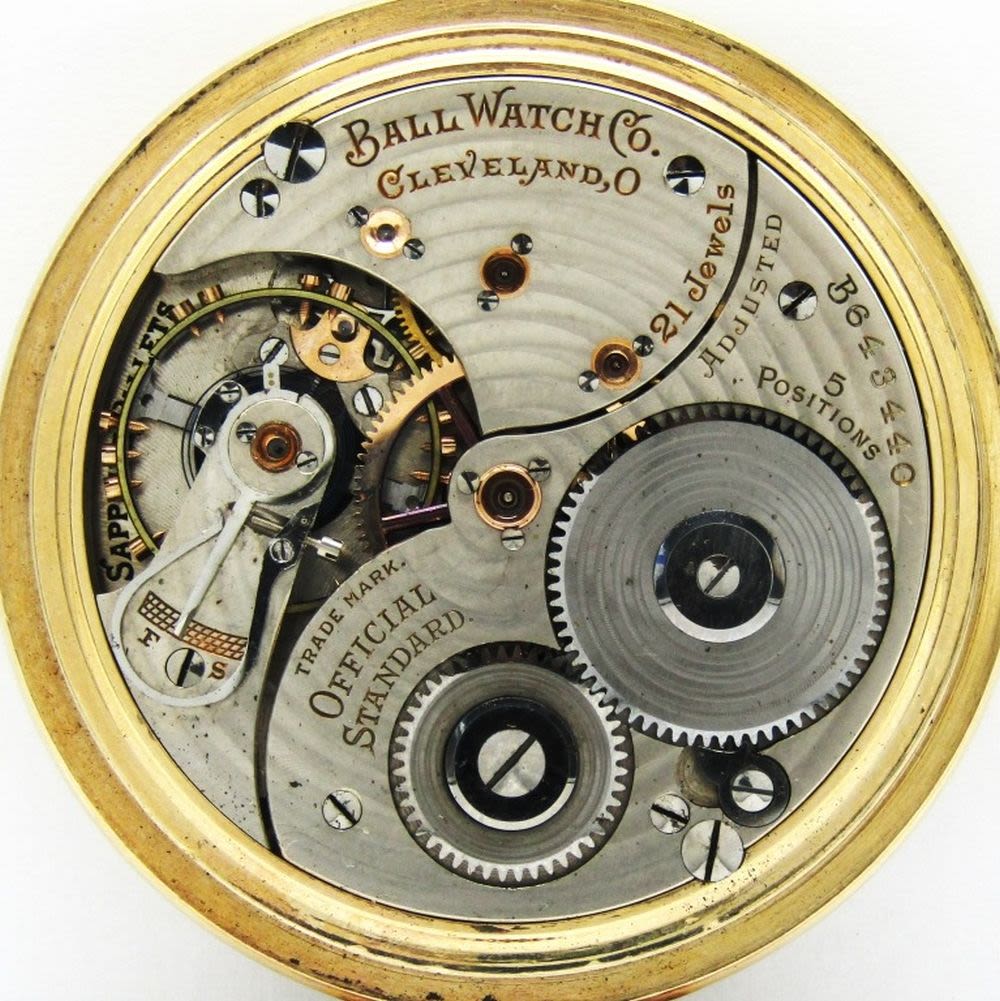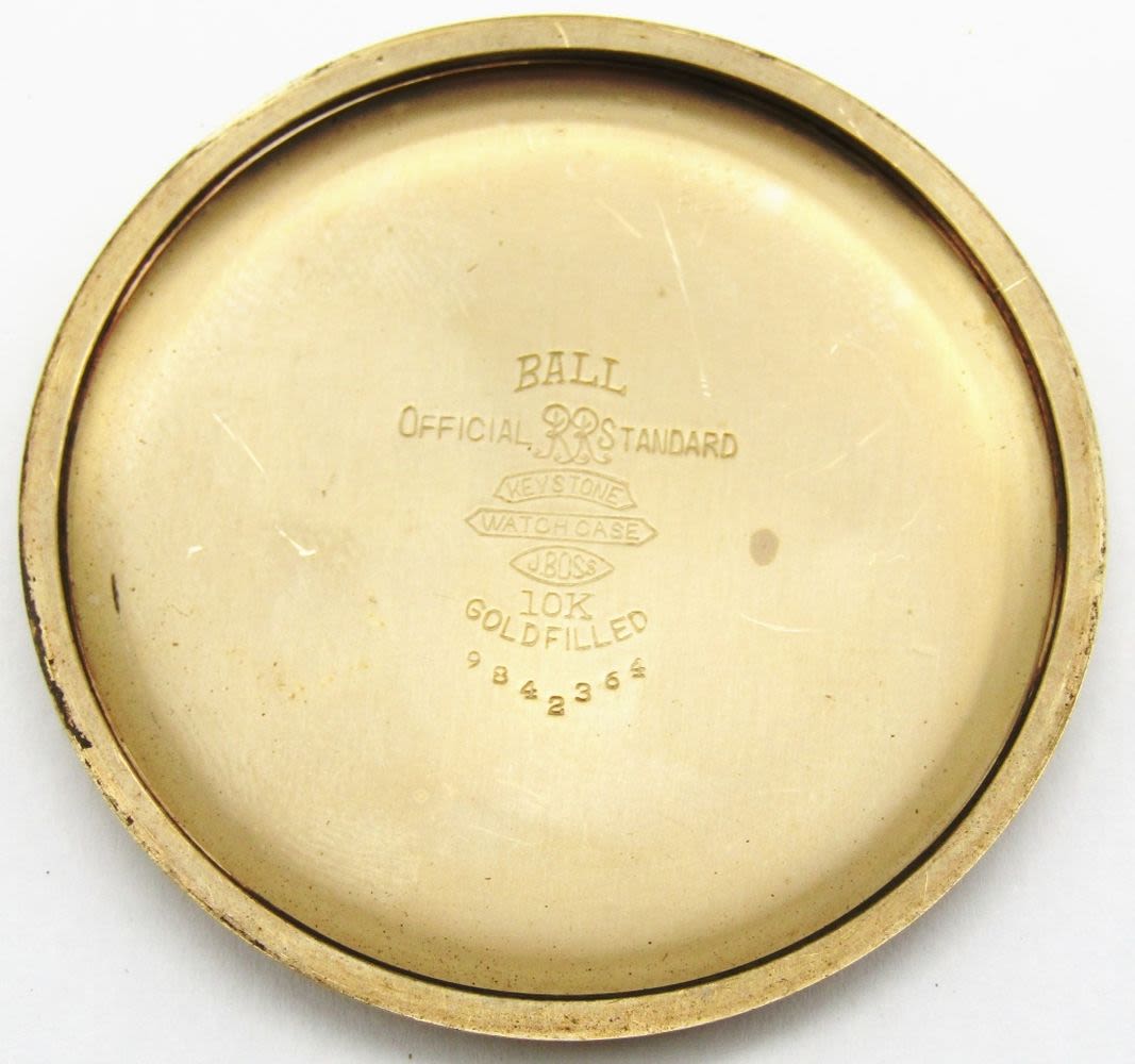Very Nice Single Sunk Porcelain Dial, 21 Jewel Lever Set Hamilton Movement, Ball Signed Yellow Gold Filled Screwback Case.