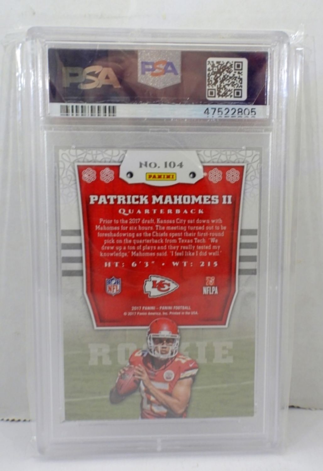 Chief’s Rookie #104 Card in Protective Case.