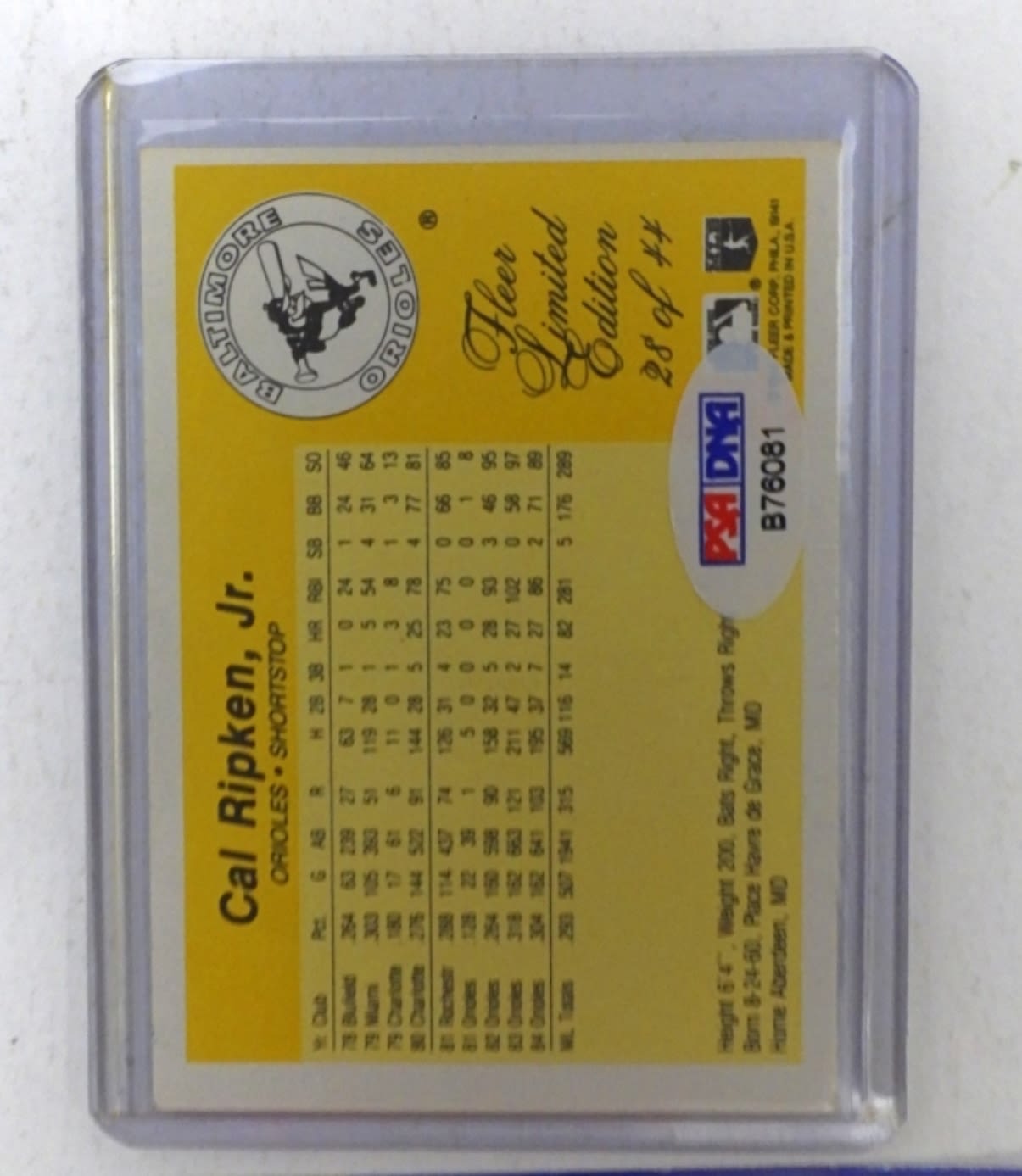 Fleer Limited Edition 28 of 44, Baltimore Orioles; With COA from PSA/DNA.