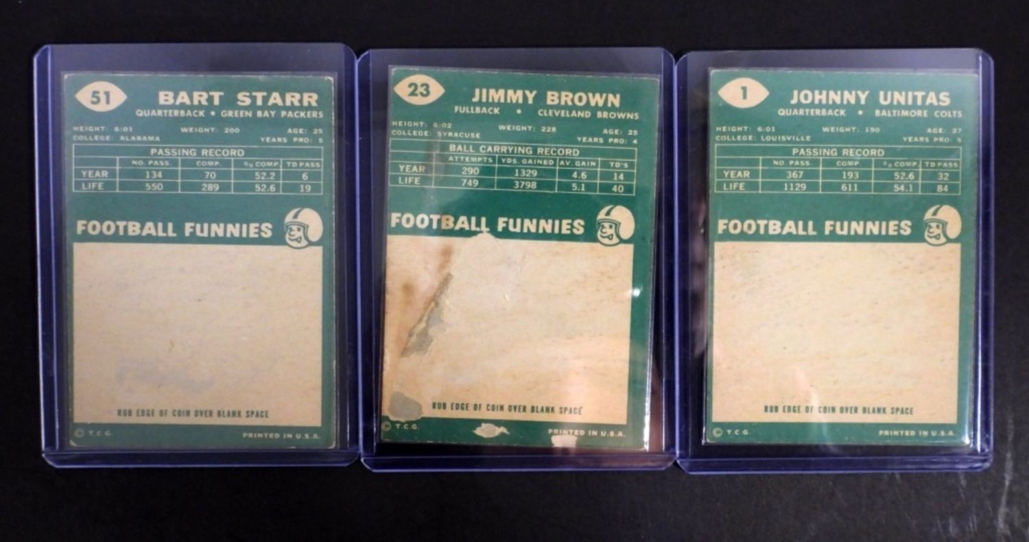 BROWN & UNITAS – #1 UNITAS VGEX, #51 STARR VGEX, #23 BROWN back damage