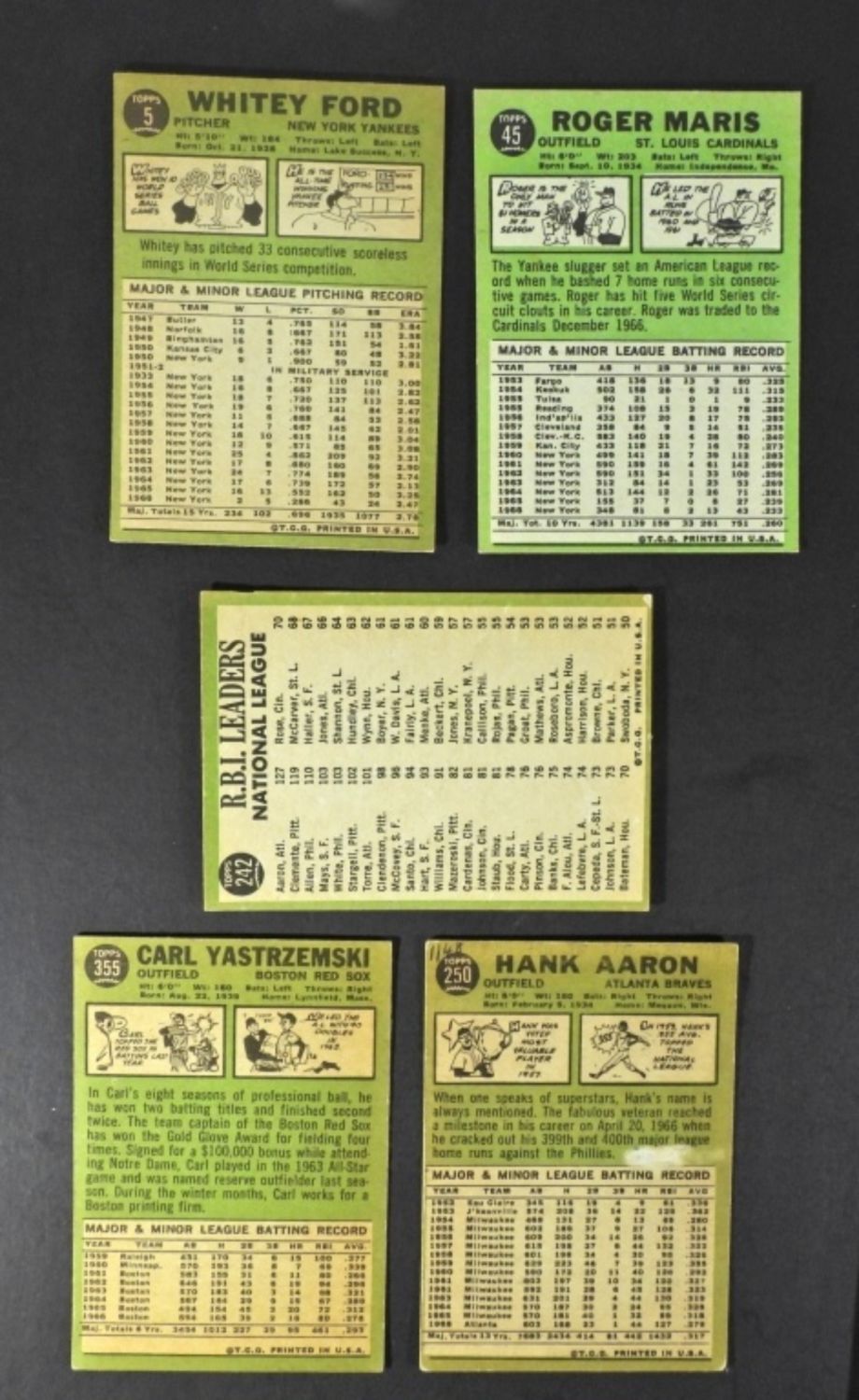 #5 FORD EX, #45 MARIS EX, #242 RBI LDRS VG, #250 AARON VG, #355 YAZ EX