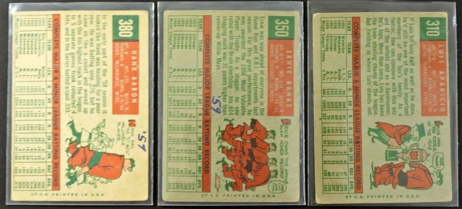 APARICIO – ERNIE BANKS #350 & HANK AARON #380 BOTH HAVE ’59 INK on REVERSE o/w VGEX, APARICIO #310 VG/GOOD