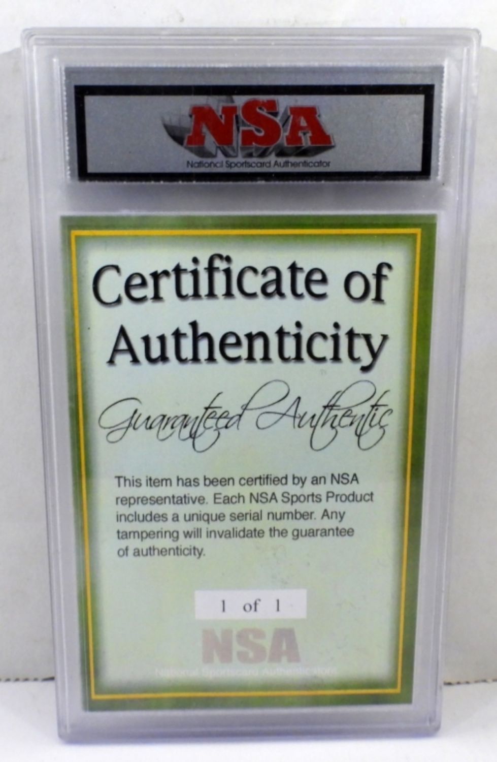1 of 1 Authentic NSA Cut Game Used Memorabilia; with COA. In Protective Case.