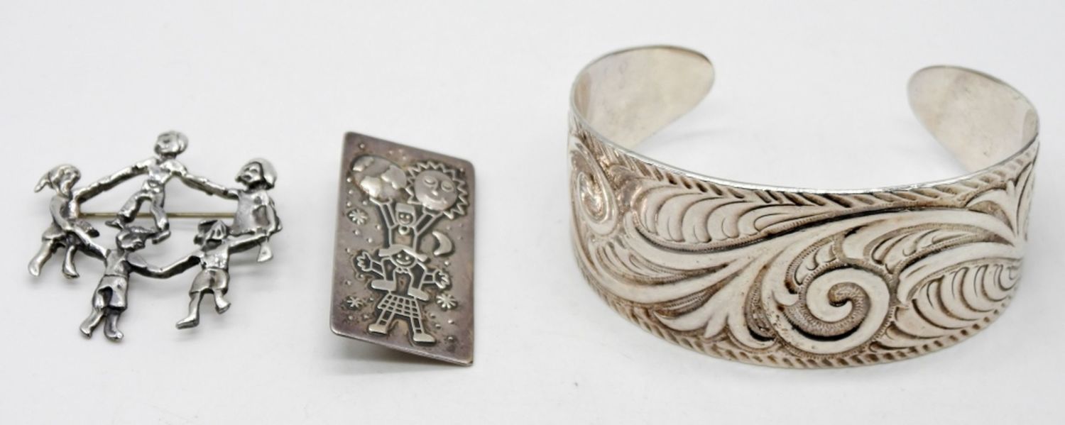 both CHILDREN at PLAY PENDANTS STAMPED but NOT ABLE TO IDENTIFY – CUFF 925 THAILAND STAMPED 7″ (41 dwt)