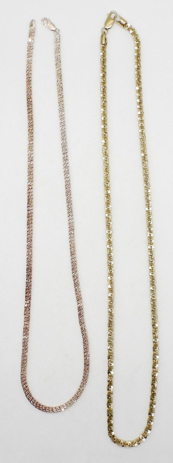 GOLD & COPPER TONE STERLING; 22″ & 24″ LENGTHS; BOTH MARKED 925 ITALY; (29.7 DWT)