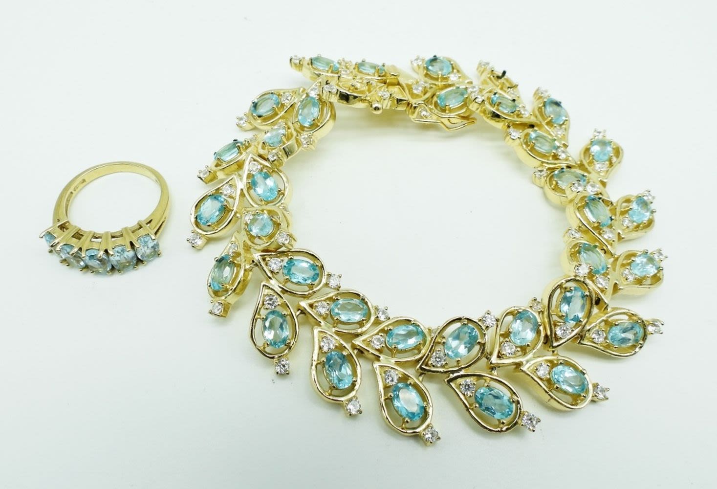 30DWT, RING IS A SIZE 6 STAMPED 925, BRACELET IS 7 1/2″ LONG, OPEN BOXED CLASP, STAMPED 925 THAILAND ( ONE STONE IS MISSING NEAR CLASP FOR REPAIR)