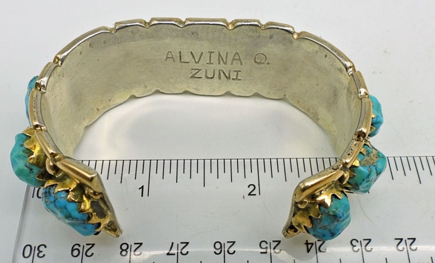 Marked “Alvina Q. Zuni”; 5.25″ Open, 6.5″ with Gap; 54.7 dwt.