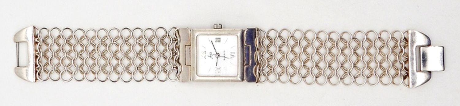 ARIA STERLING SILVER VINTAGE WRIST WATCH WITH STERLING SILVER CHAIN BAND – STAMPED 925 CHINA – 7″ LENGTH – 27.4 DWT