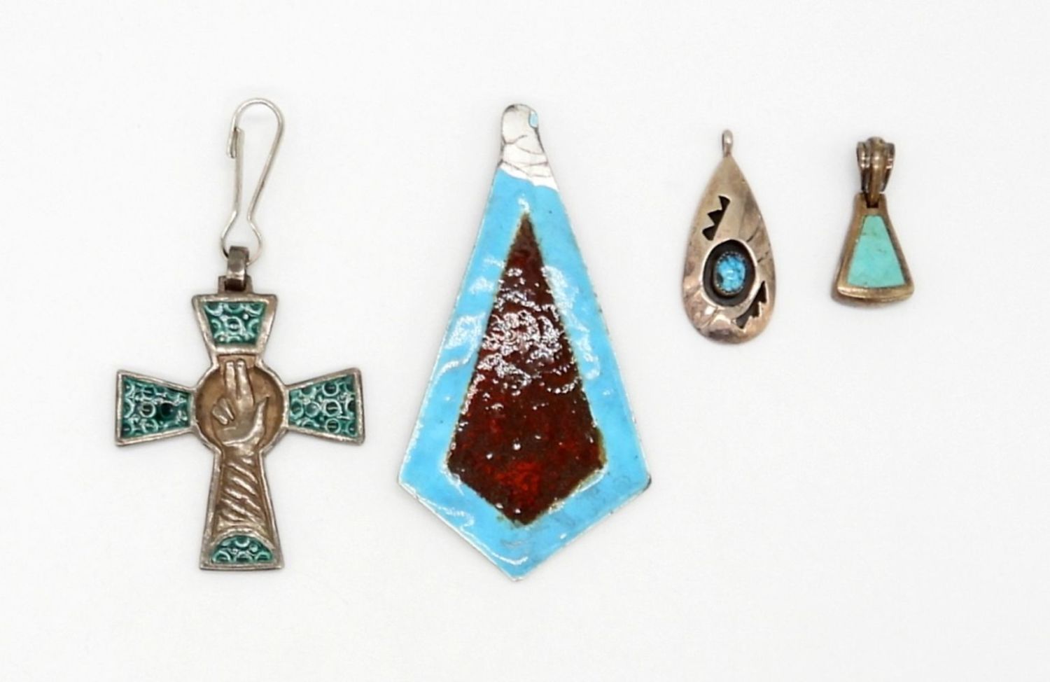 STERLING SILVER WITH TURQUOISE AND PAINTED – (1) MARKED 925 THAILAND – 50.7 DWT