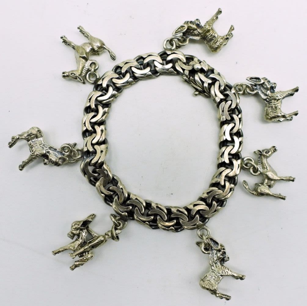 With 7 Donkey Charms, Marked “Taxco FV Sterling”; 48 dwt