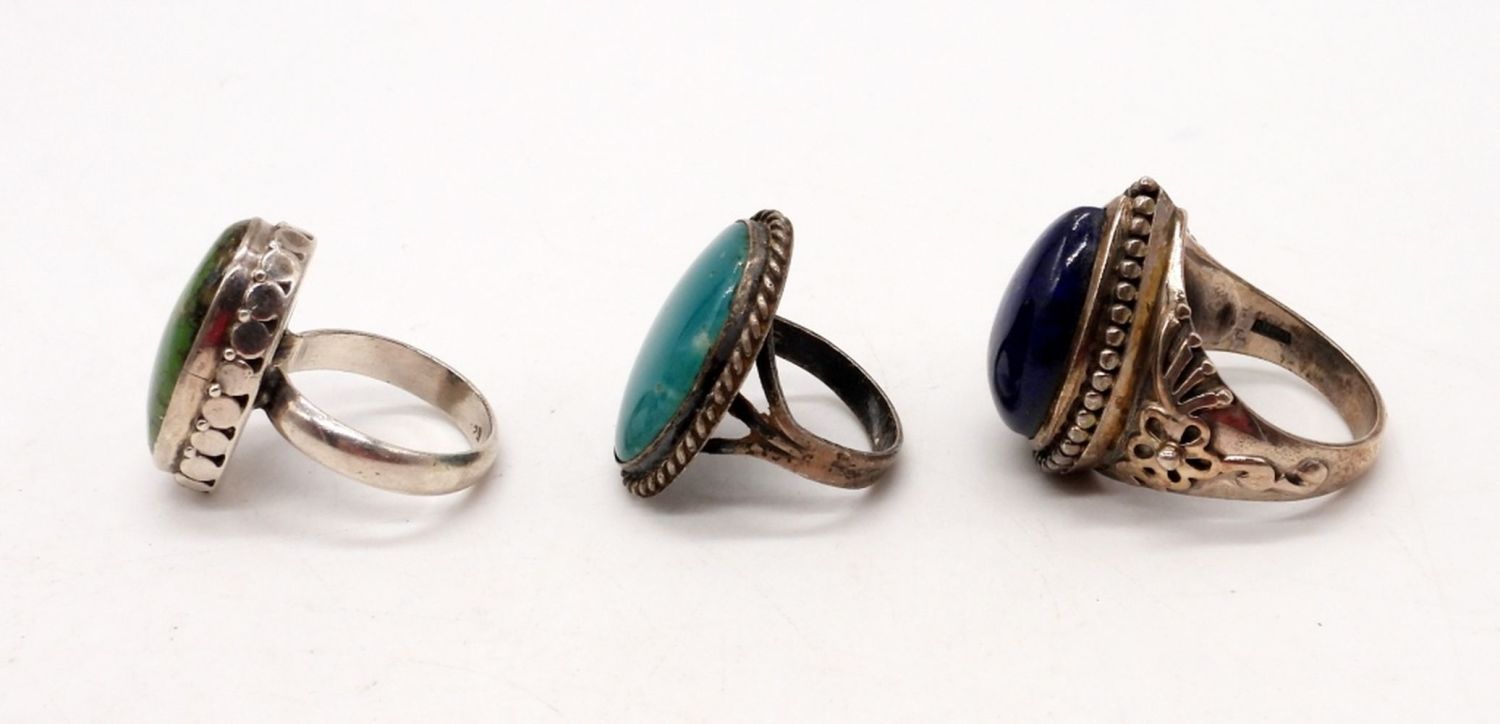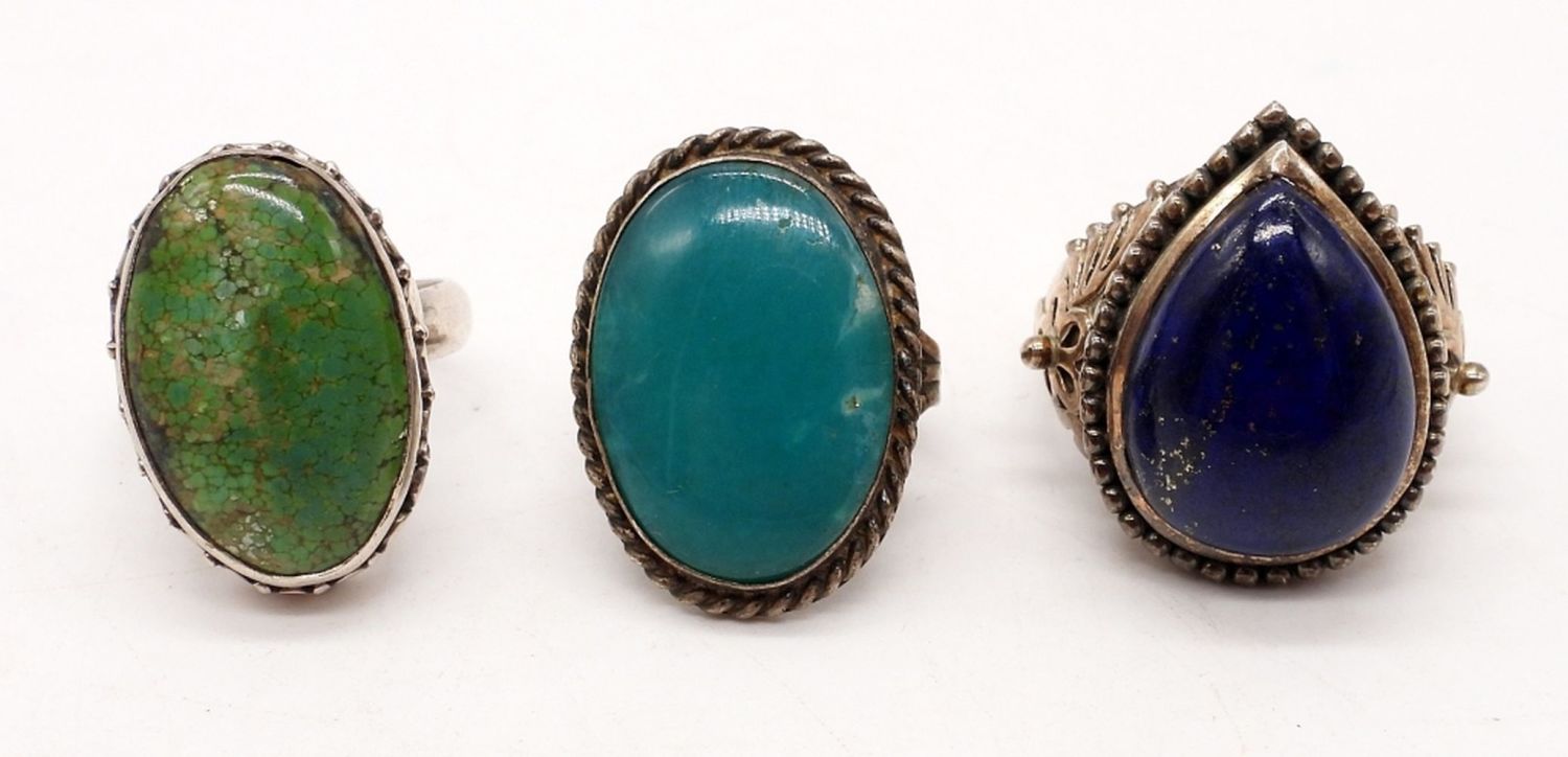 BLUE LAPIS TEAR DROP size 10, GREEN STONE size 7, TEAL STONE size 5.5 (19DWT)