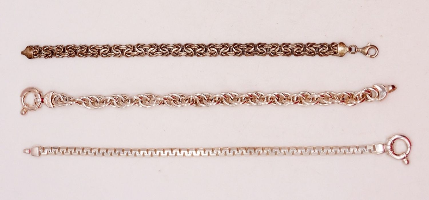 950 ITALY MILOR SQUARE LINK 7 1/2″, 950 ITALY MILOR THREE ROLO LINK 7 1/4″, AK 925 TURKEY BYZANTINE 7″ ( 21 DWT)