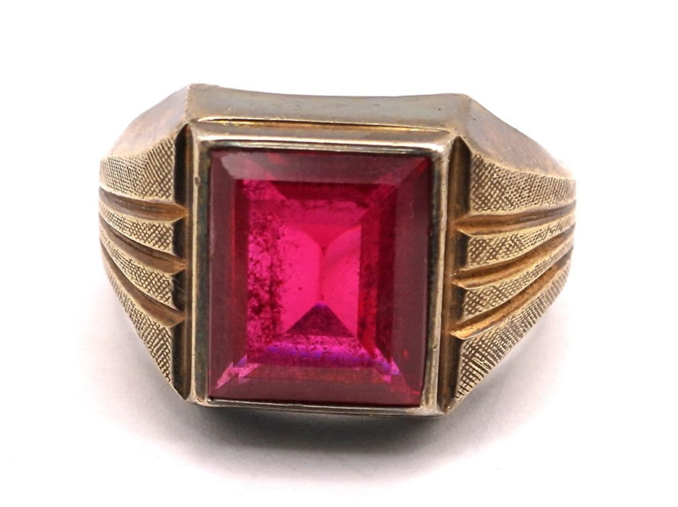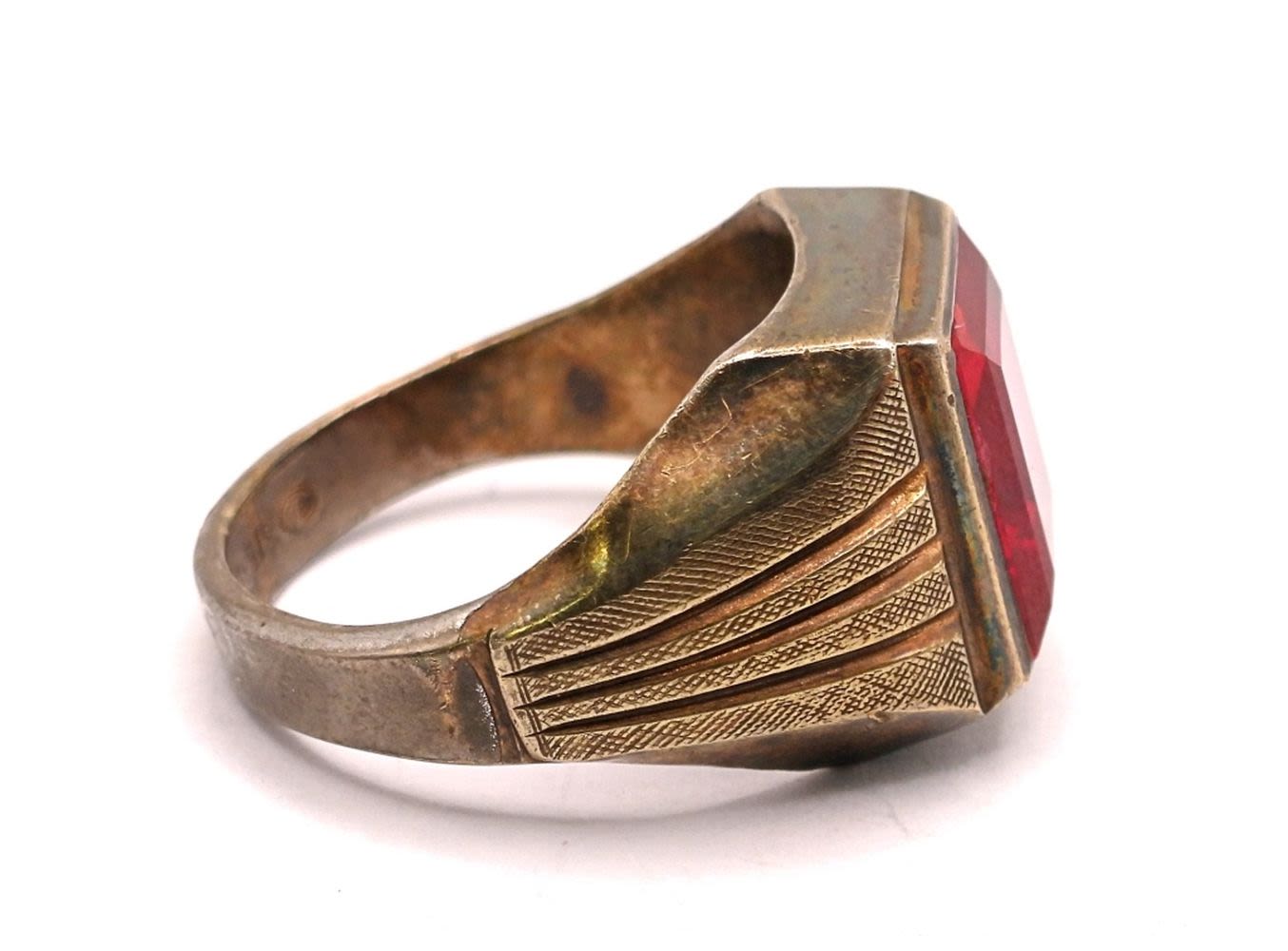 with RED STONE – SIZE 11 DRESS RING (10 DWT)