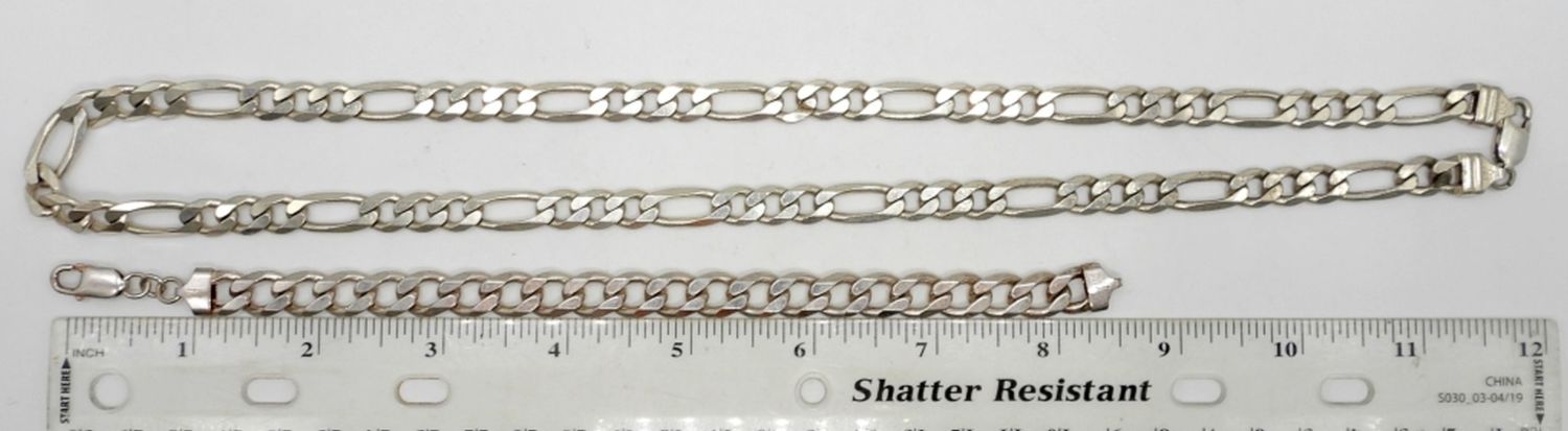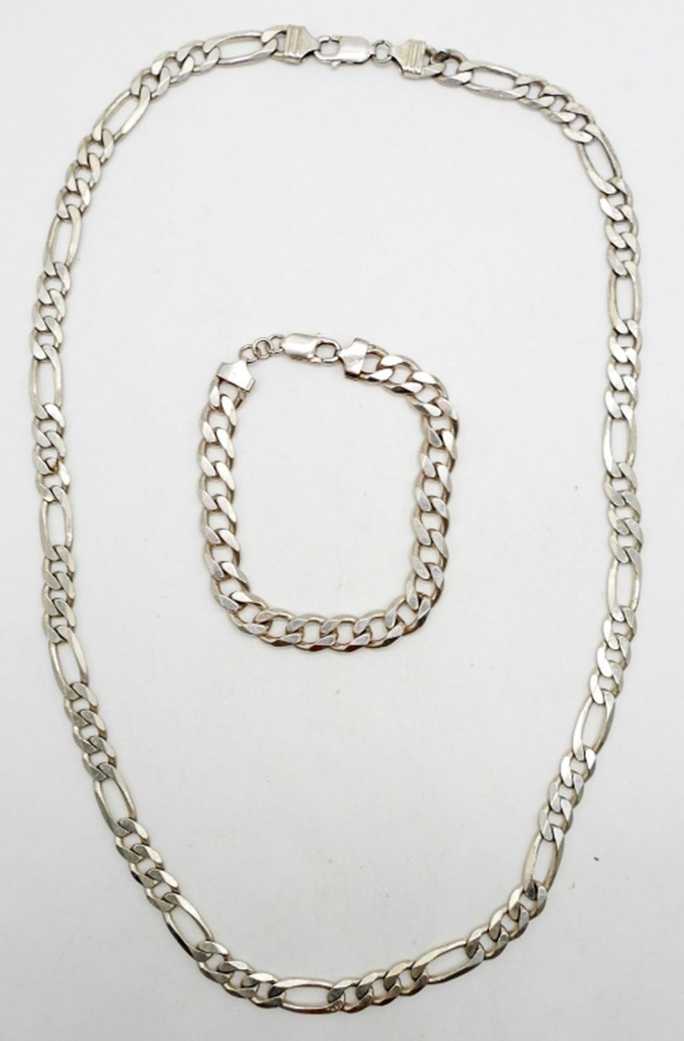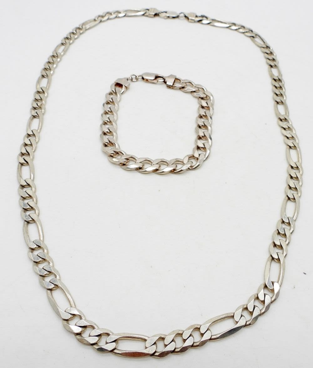 59.6 DWT, NECKLACE 25″ LONG WITH LOBSTER CLASP, BRACELET 8 1/2″ LONG WITH LOBSTER CLASP, BOTH STAMPED NEAR CLASP 925 ITALY