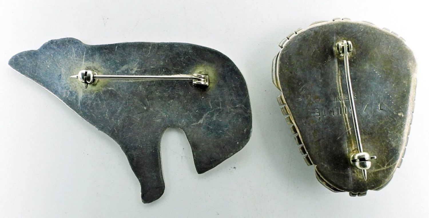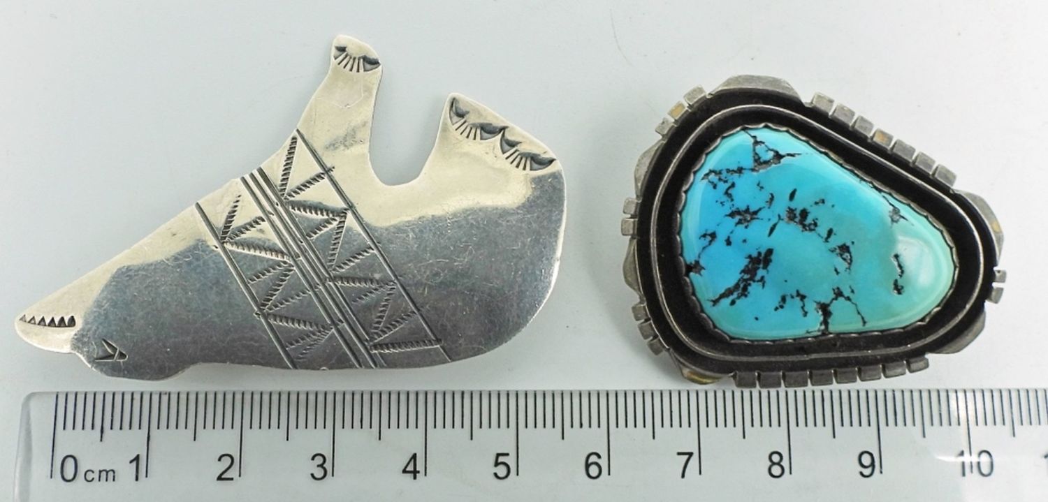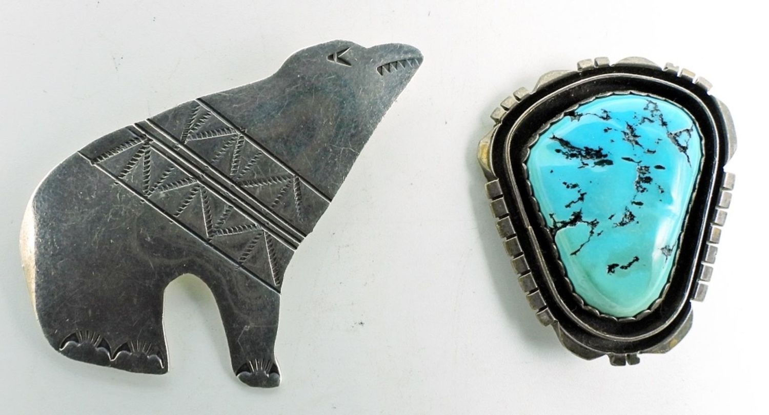 Navajo Turquoise Marked “T / Billie Sterling”; Southwest Sterling Bear; 18.1 dwt.