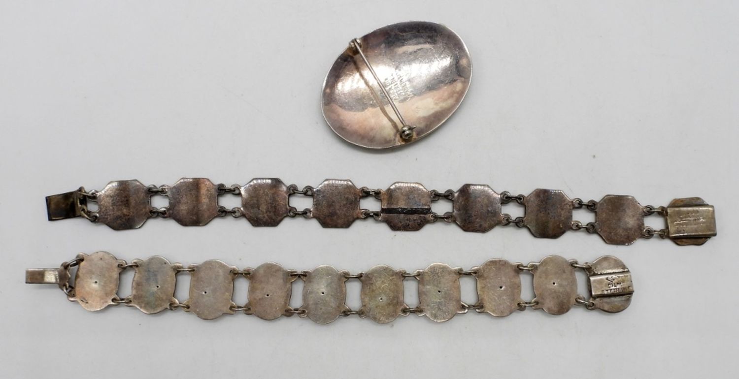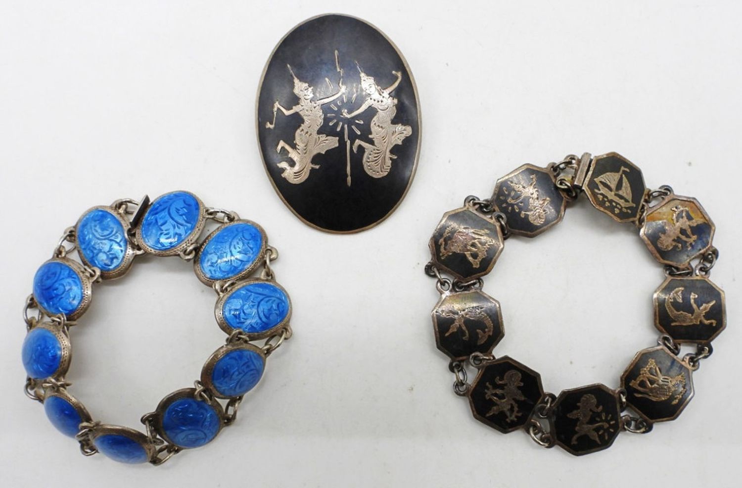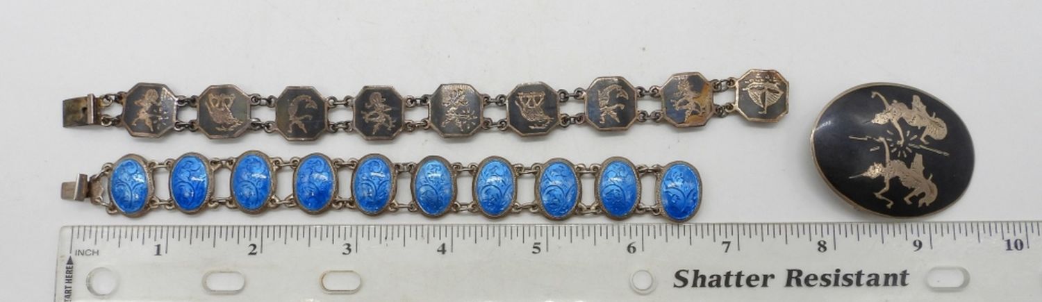 29DWT, ALL STAMPED SIAM STERLING, BROOCH HAS ALEX CO ALSO STAMPED, 1- 7 1/2″LONG, 1 6 1/2″LONG,