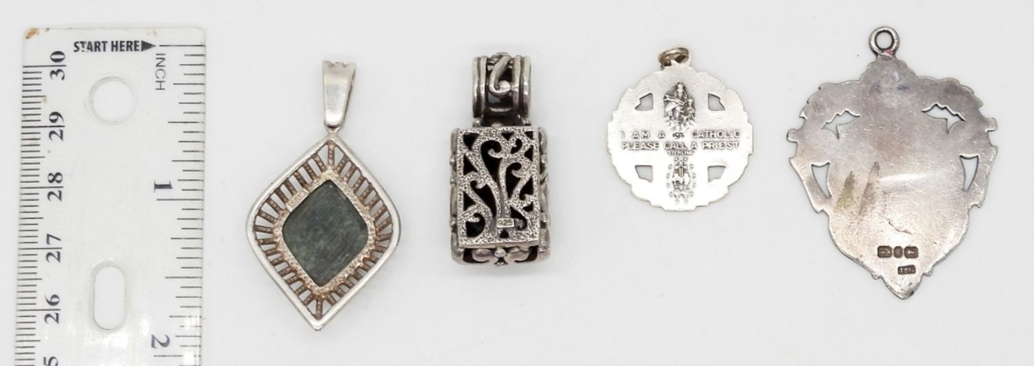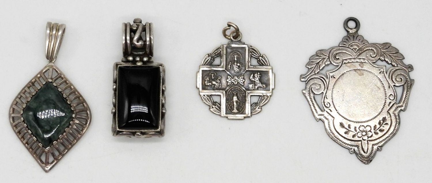 STERLING SILVER WITH ONYX, SMOOTH NATURAL STONES & ETCHED DESIGNS – MARKED STERLING, 925 – 21 DWT