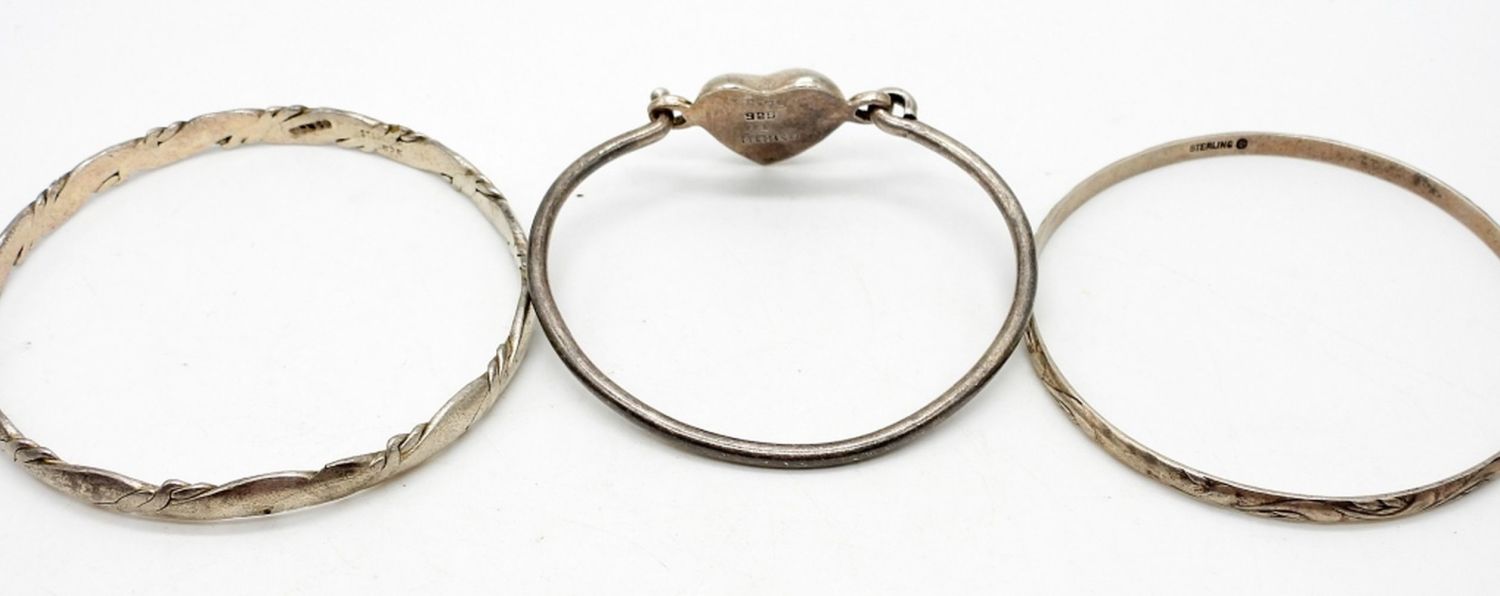 HEART DESIGN WITH HINGE STYLE, BANGLE STYLE ENGRAVED – STAMPED MEXICO 925, STERLING 925 – 7 INCH – 24.6 DWT