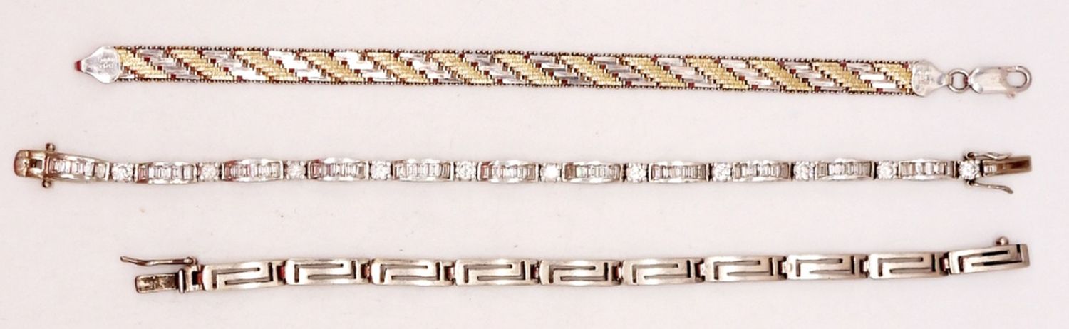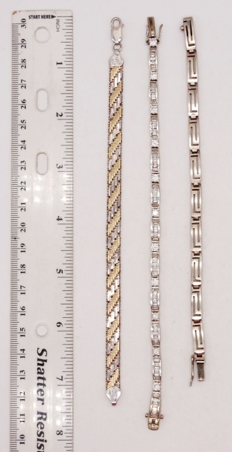 GOLD & SILVER TONE STERLING WITH CLEAR GEMSTONES – 7-7.5″ LENGTHS – STAMPED 925, MADE IN ITALY – 26.6 DWT